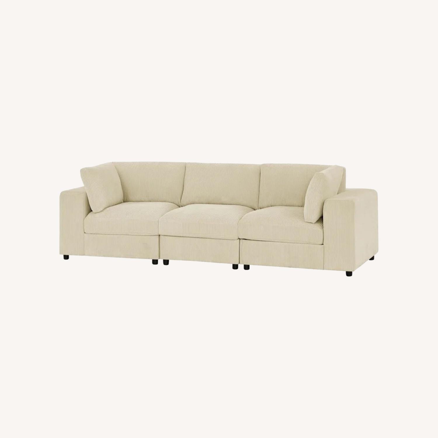 Anchor your living room or den with this cozy and inviting modular sofa that marries modern lines with plush comfort. It measures 108.5” wide making it a good choice for a larger space. The engineered wood frame is wrapped in foam and super soft corduroy upholstery that adds lots of visual texture. The seat and back cushions are removable and the sofa components are firmly connected via the included bracket clips. You and your family will enjoy stretching out on this sofa for afternoon naps and evening movies. Assembly is required.