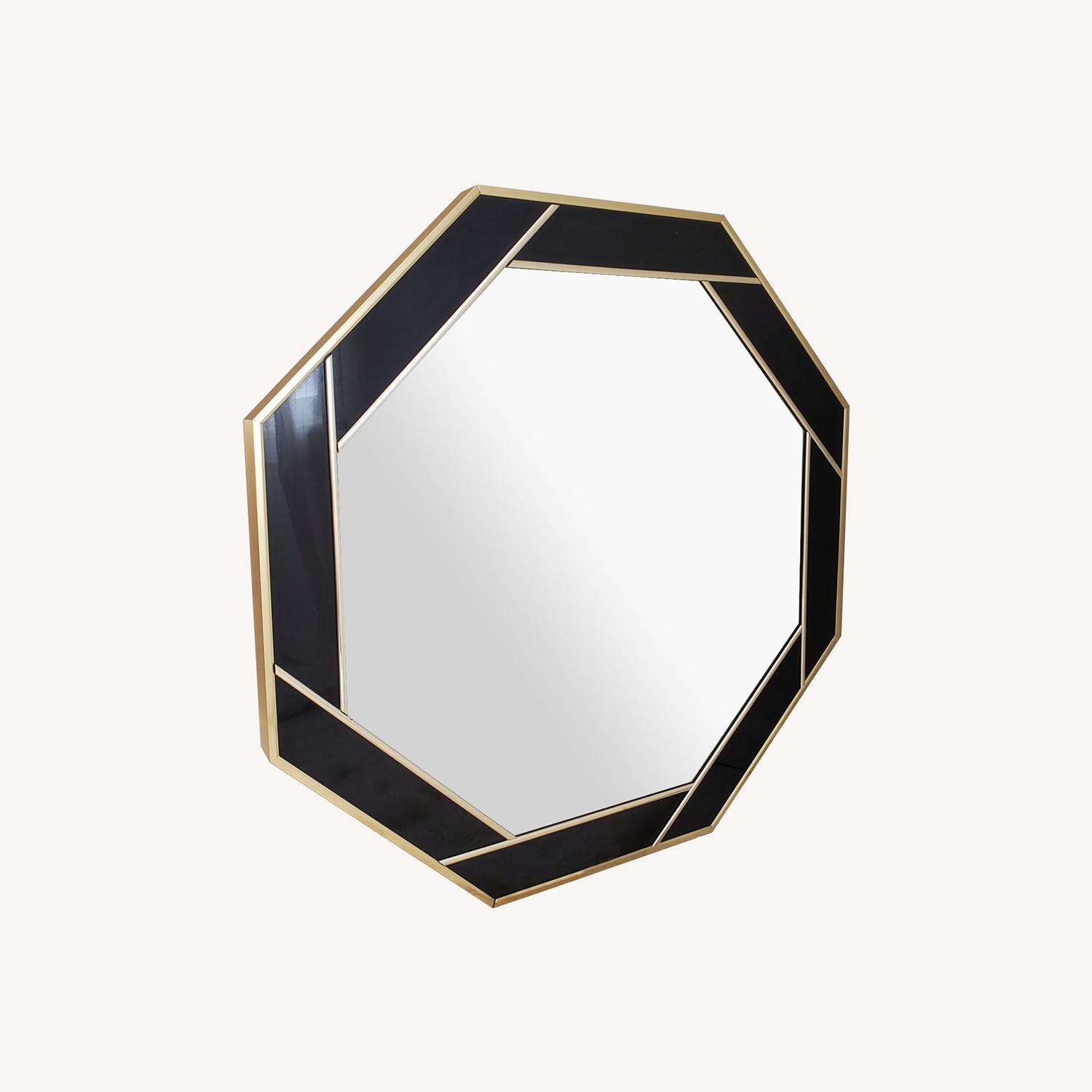 1989 Windsor Art Deco Black & Brass Octagon Mirror - image-0