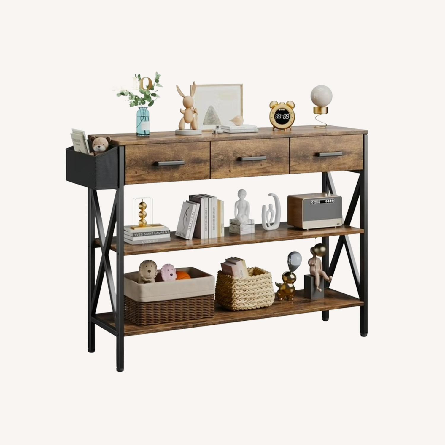 Seller's Notes:Aiho 47 "L Console Table with Drawers, Entryway Table with Storage Shelves, Sofa Table for Living Room, Entryway - Rustic Brown
