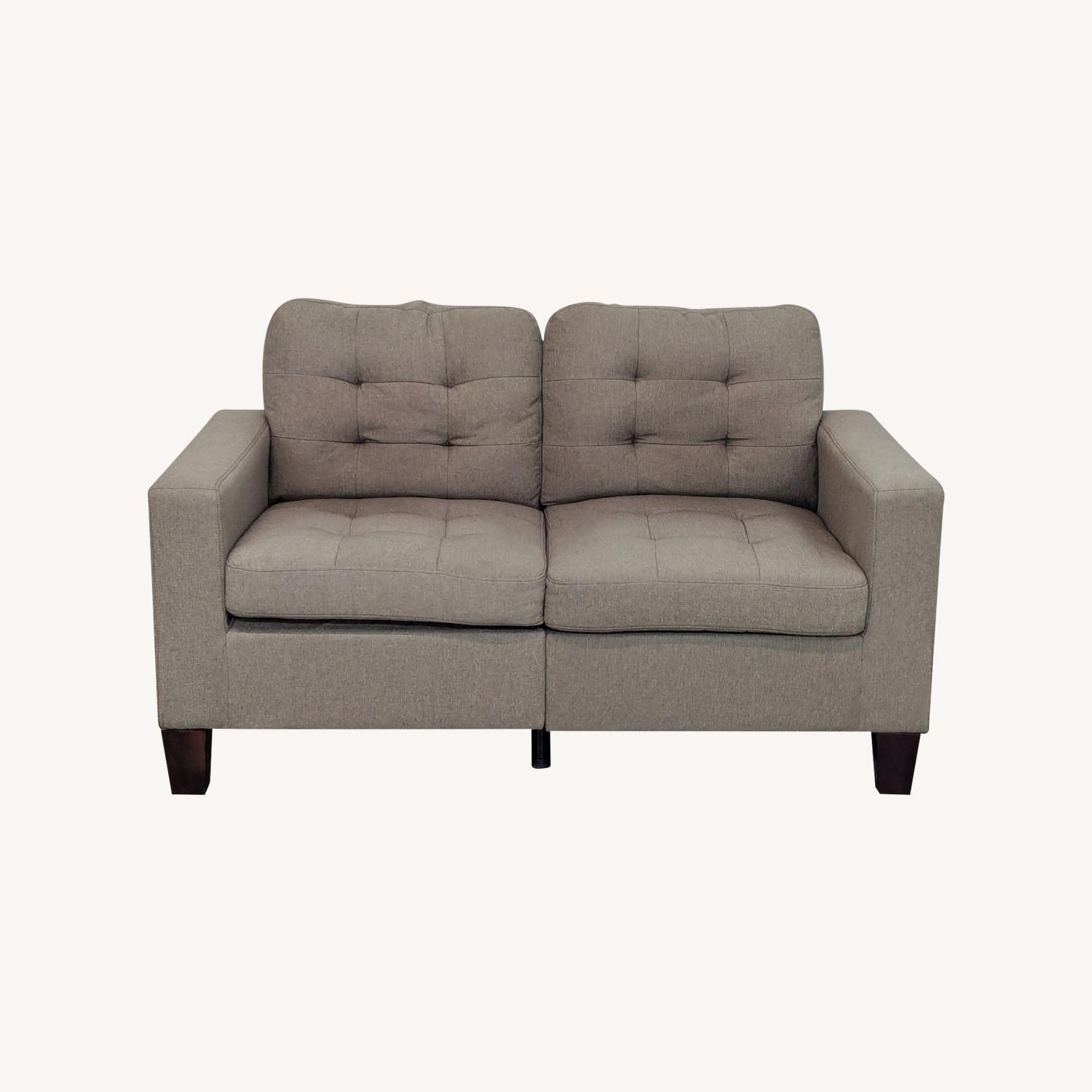 Seller's Notes:Features taupe tufted upholstery with tapered wood block feet.