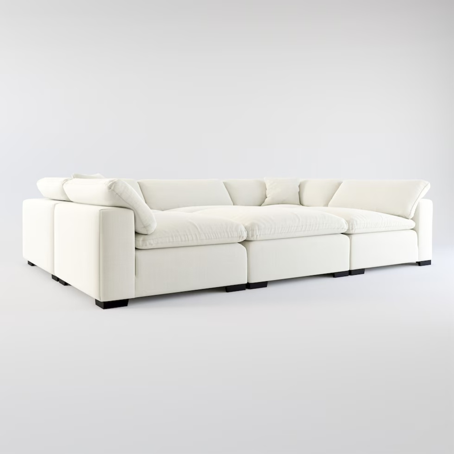Seller's Notes:Hi! This American Signature Plush 3 Piece Modular Sectional has been my most favorite couch I've ever owned. I added memory foam to the couch cushions so it has incredible softness yet sturdiness, while keeping its shape (unlike a lot of cloud couches!). I would keep this couch for life if I could, but the only reason I'm selling it is my partner is very tall and wants a couch with a higher back. I love the modern look, and the Ivory fabric stays surprisingly super clean. It wears really well and has clips on the bottom (that are removable) so you can connect the three pieces to help them stay together. You could also configure this couch as a 2piece loveseat with a lounger on one side if you'd like. The three pieces can be configured however you like!