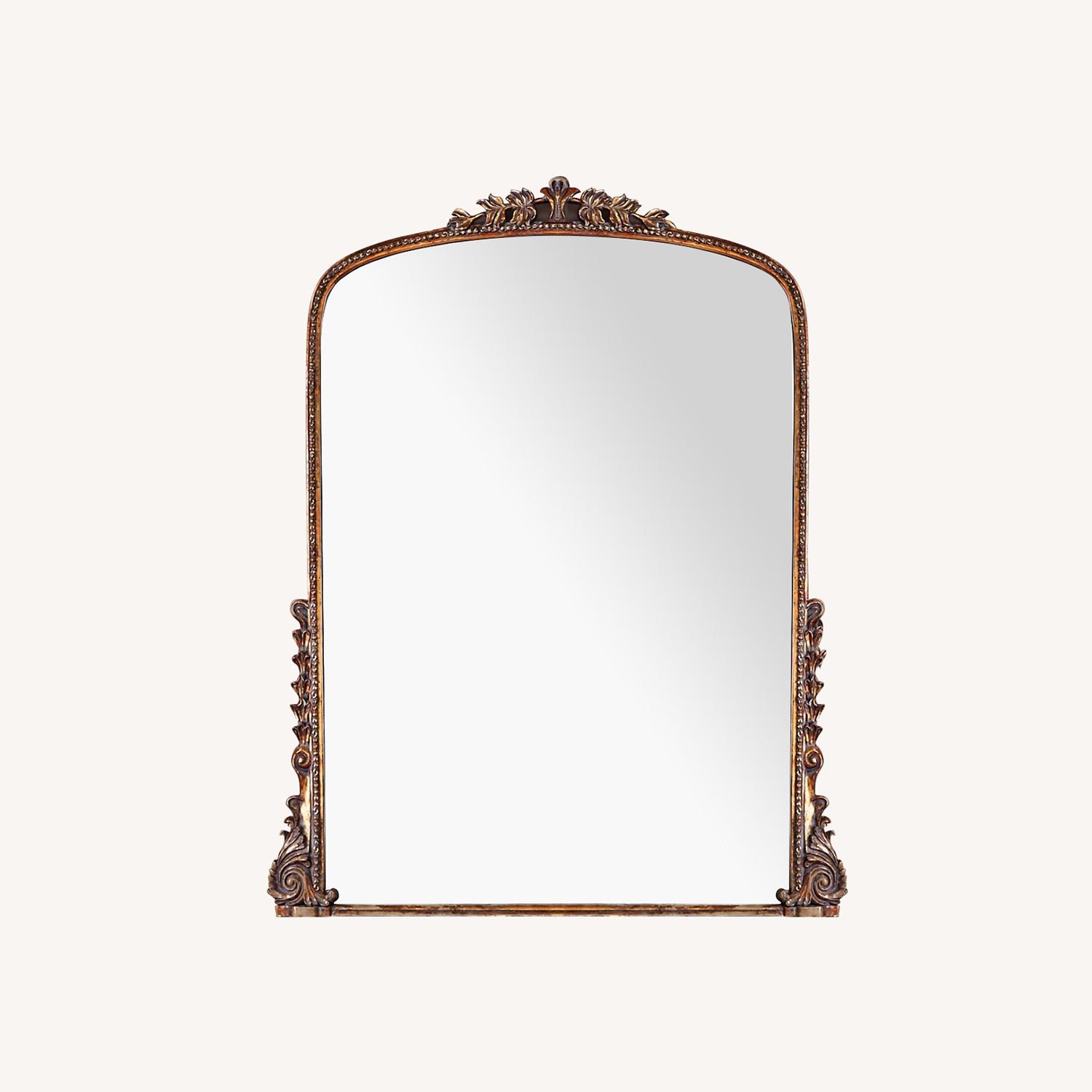 Seller's Notes:Stunning, vintage-inspired, and social-media-famous Gleaming Primrose Mirror. Elegant adornments along its apex and edges. Due to the handcrafted nature of this piece, minor variations in the reflection can occur along the edges of the glass. Because this piece is crafted by hand, no two pieces are exactly alike. Handcrafted resin, iron, engineered hardwood, mirrored glass. Weighs 200 lbs. Do not hang, lean against wall only.