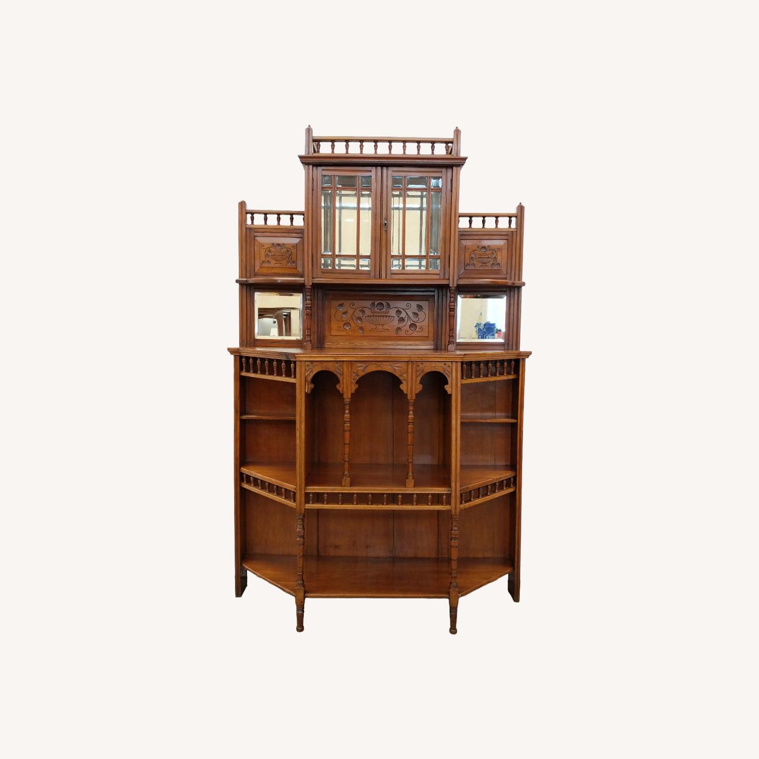 Seller's Notes:Authentic antique Aesthetic Movement sideboard / cabinet. From the late 19th Century. This piece is in great shape overall for its age with some minor age-related wear (see photos). If you would like any additional details, please contact us. Dimensions: 72" tall overall 46.5" wide overall 18.5" deep overall 39.5" tall to main surface Ref: UK4-037