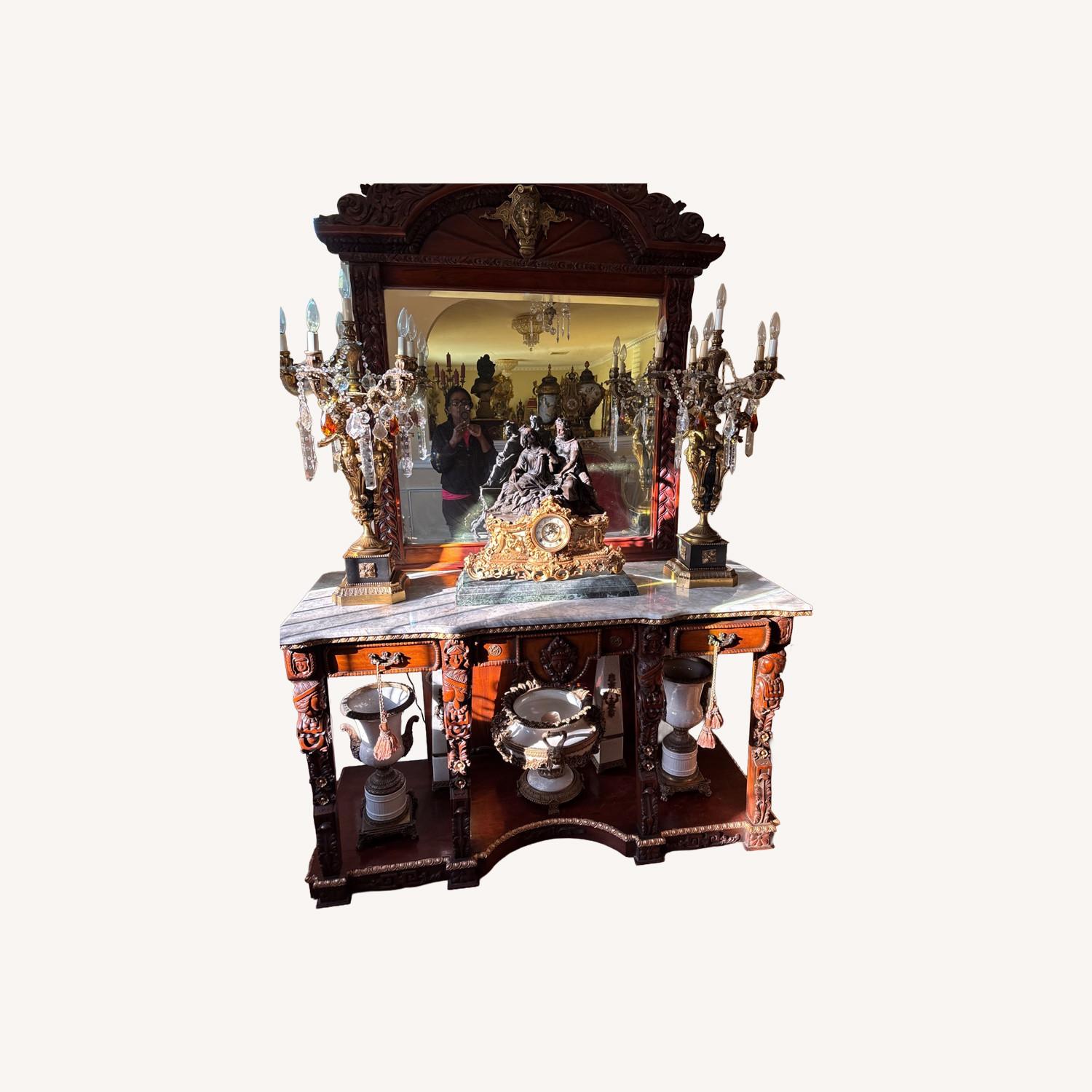 Seller's Notes:Beautiful wood hand carved antique console table with mirror and marble top