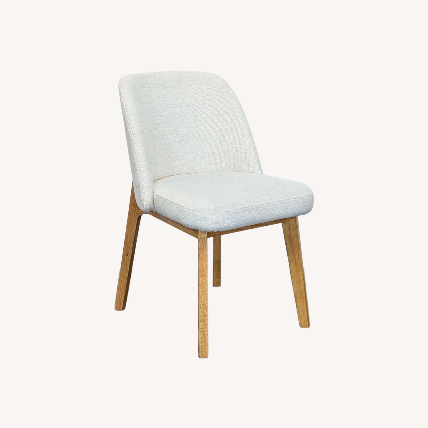 Seller's Notes:Oak wood and Camilla ivory fabric, padded seat and back
