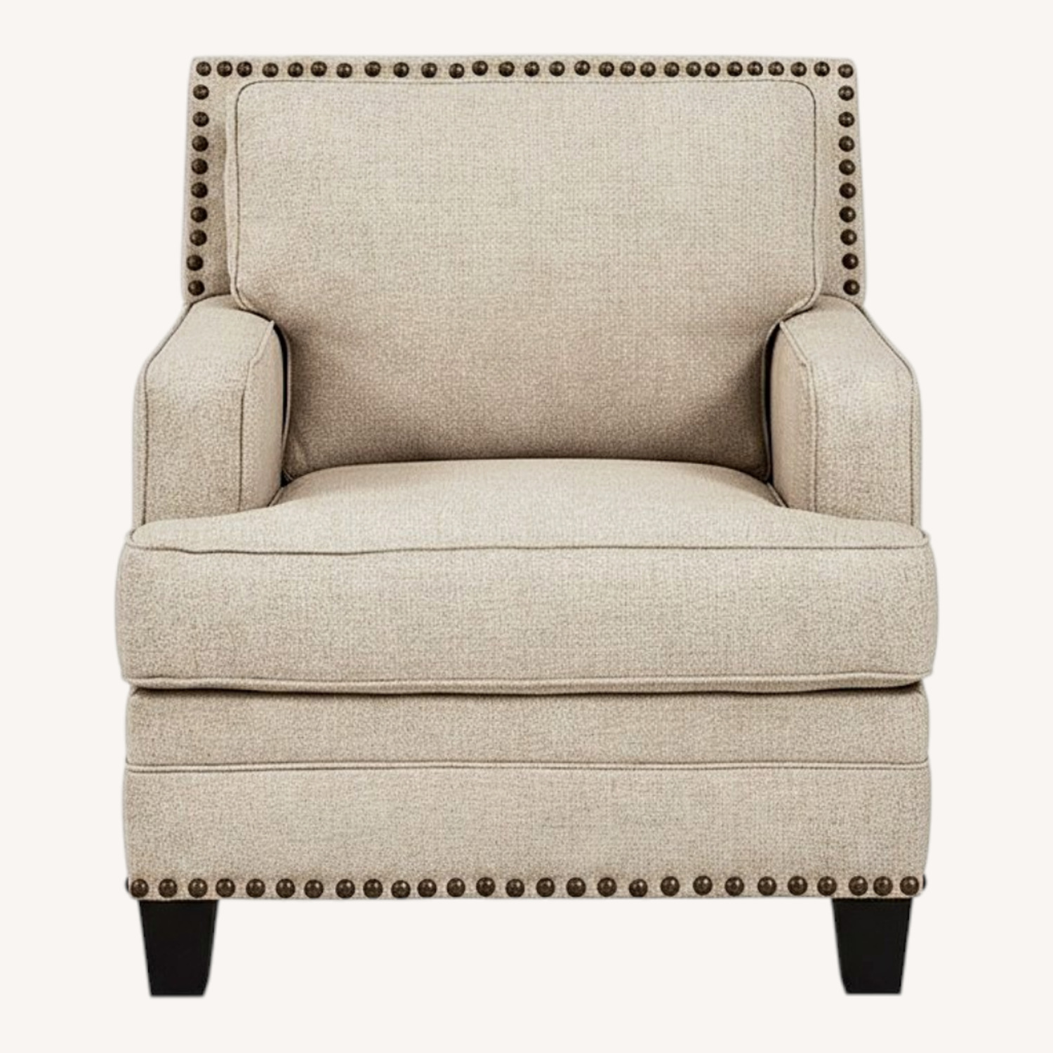 A case of contemporary and classic style influences coming together in a beautiful way, this chair in beige brings a fresh perspective to modern farmhouse living. Distinctive elements include t-cushioning that wraps around setback track arms, nailhead trim and a lovely linen-weave upholstery for an up-to-date feel.