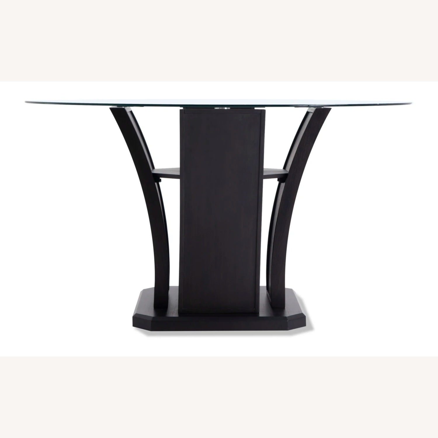 Seller's Notes:Update your dining room with my Cosmopolitan Round Dining Table! The shiny glass table top, stylized tulip base and deep espresso finish exude ultra contemporary vibes. And furthermore, you're getting contemporary flair at an untouchable value!