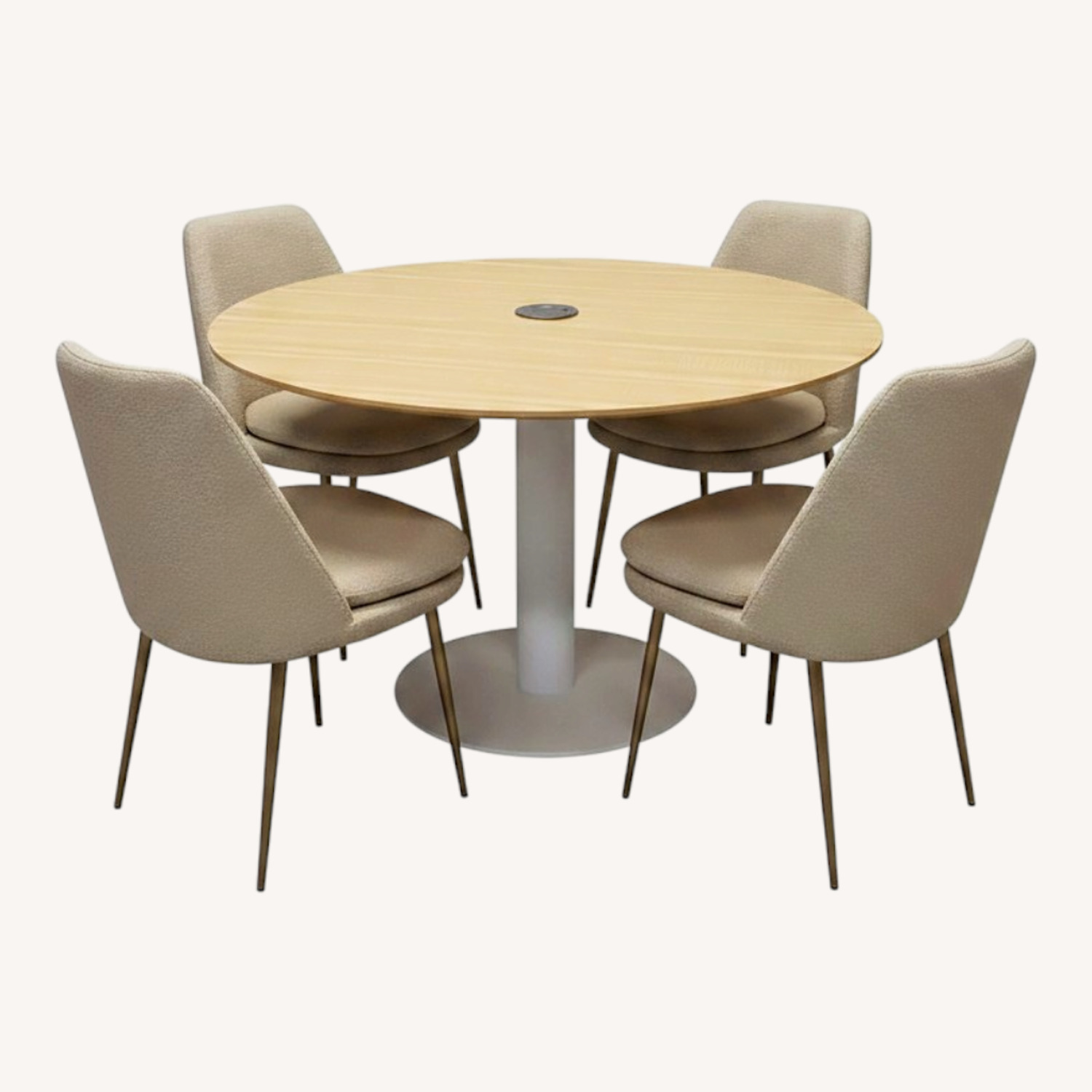 Seller's Notes:Add a fresh, modern touch to your space with the Round Oak Plywood Cafe Table with White Metal Base. Measuring 800mm (diameter) x 750mm (height) and weighing 23kg, this sleek table combines functionality with a light, contemporary design. The oak-finished plywood tabletop exudes natural warmth, while the sturdy white metal base provides excellent stability, making this table perfect for cafes, small dining areas, or home offices.
