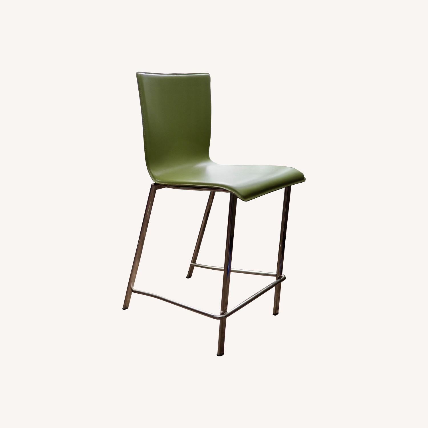Seller's Notes:For sale are two apple-green stitched leather composite bar/counter stools, 24" seat height, in great condition with minimal blemishes. The molded shape and high back make them very comfortable to sit in, and the material is extremely resilient to spills and wear. They have gone unused for several years after moving to an apartment without suitable counter.