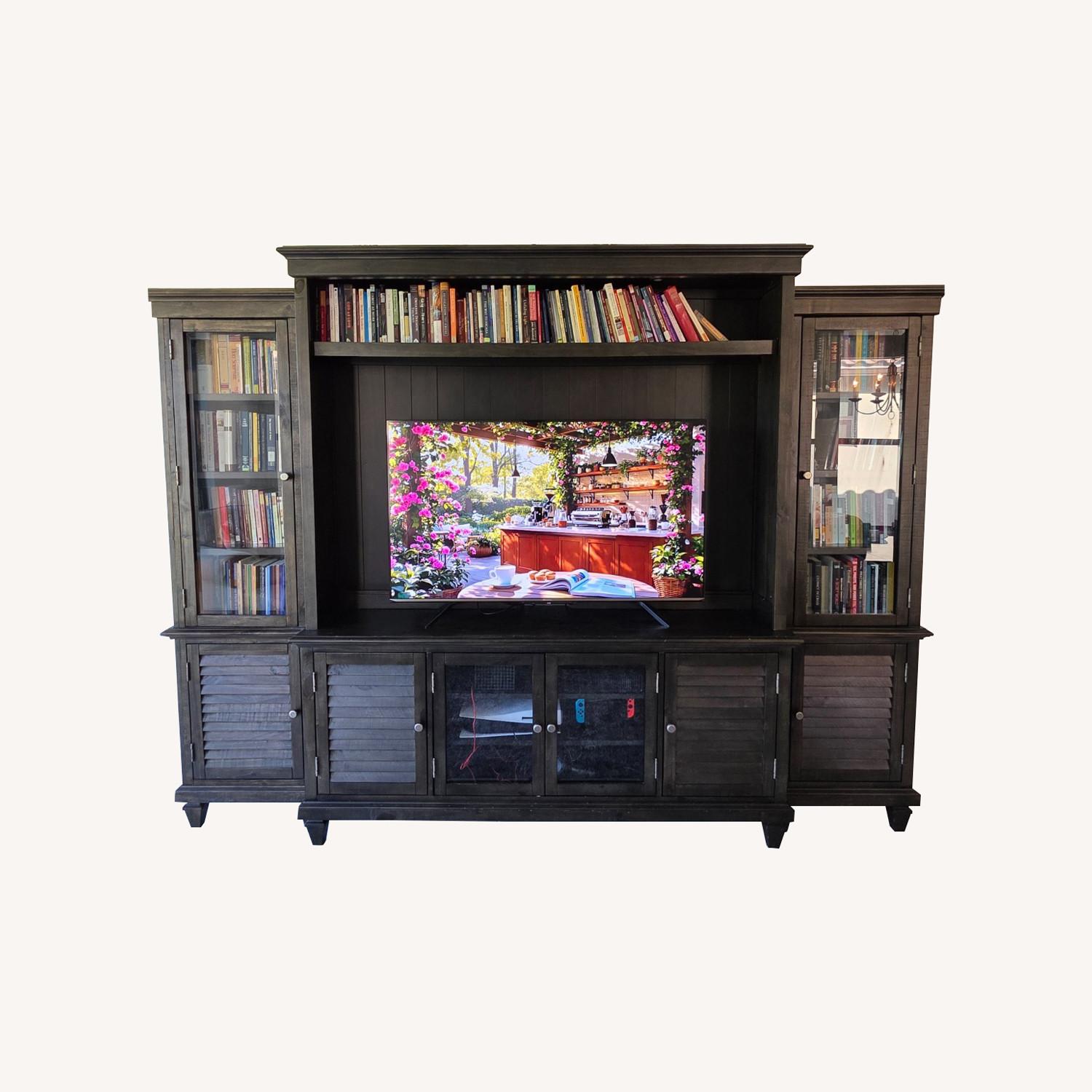 Seller's Notes:A beautiful Sonoma Dark Tone Entertainment Wall, replete with ample storage space, bookshelves, a hutch, TV stand, and two piers. We're moving, and it'll be too complicated to move it with us.