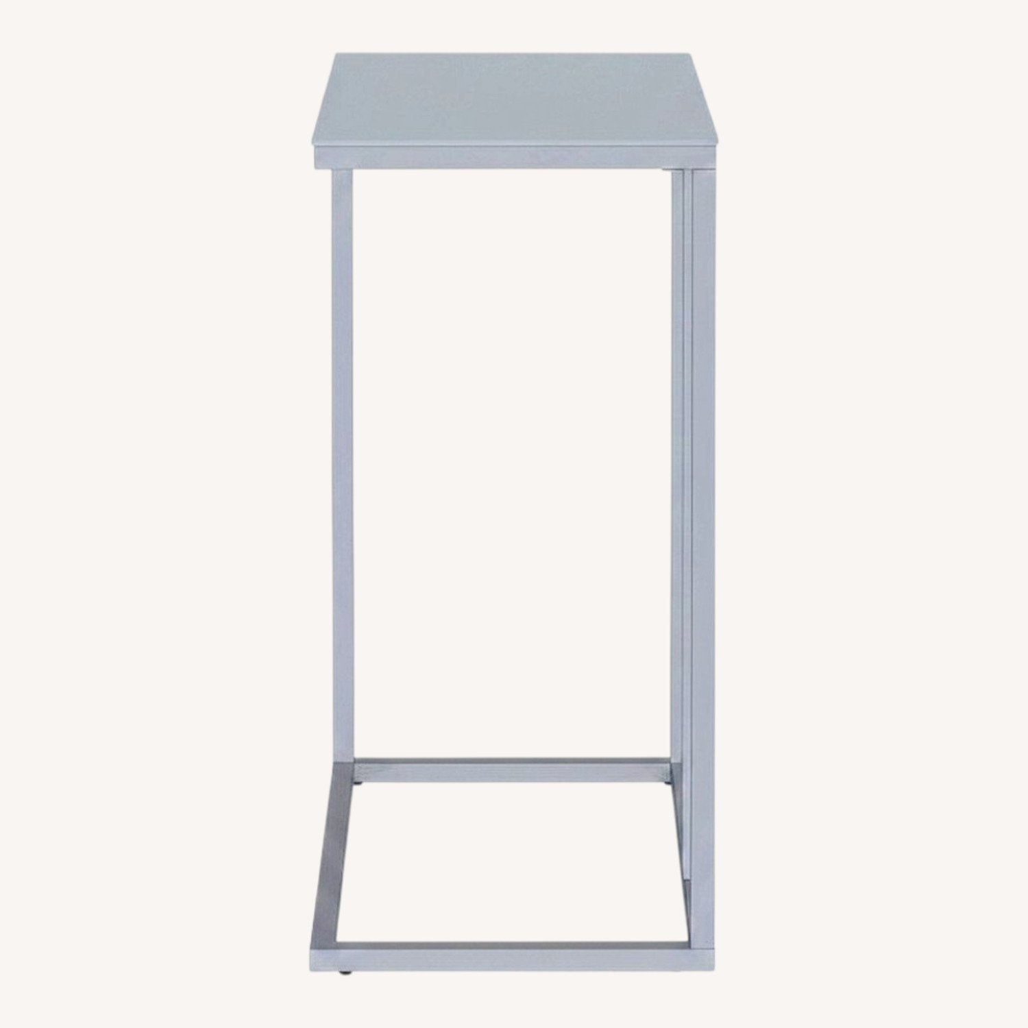 Seller's Notes:Add a modern touch to your space with this contemporary side table featuring a durable chrome metal frame and tempered glass top.
