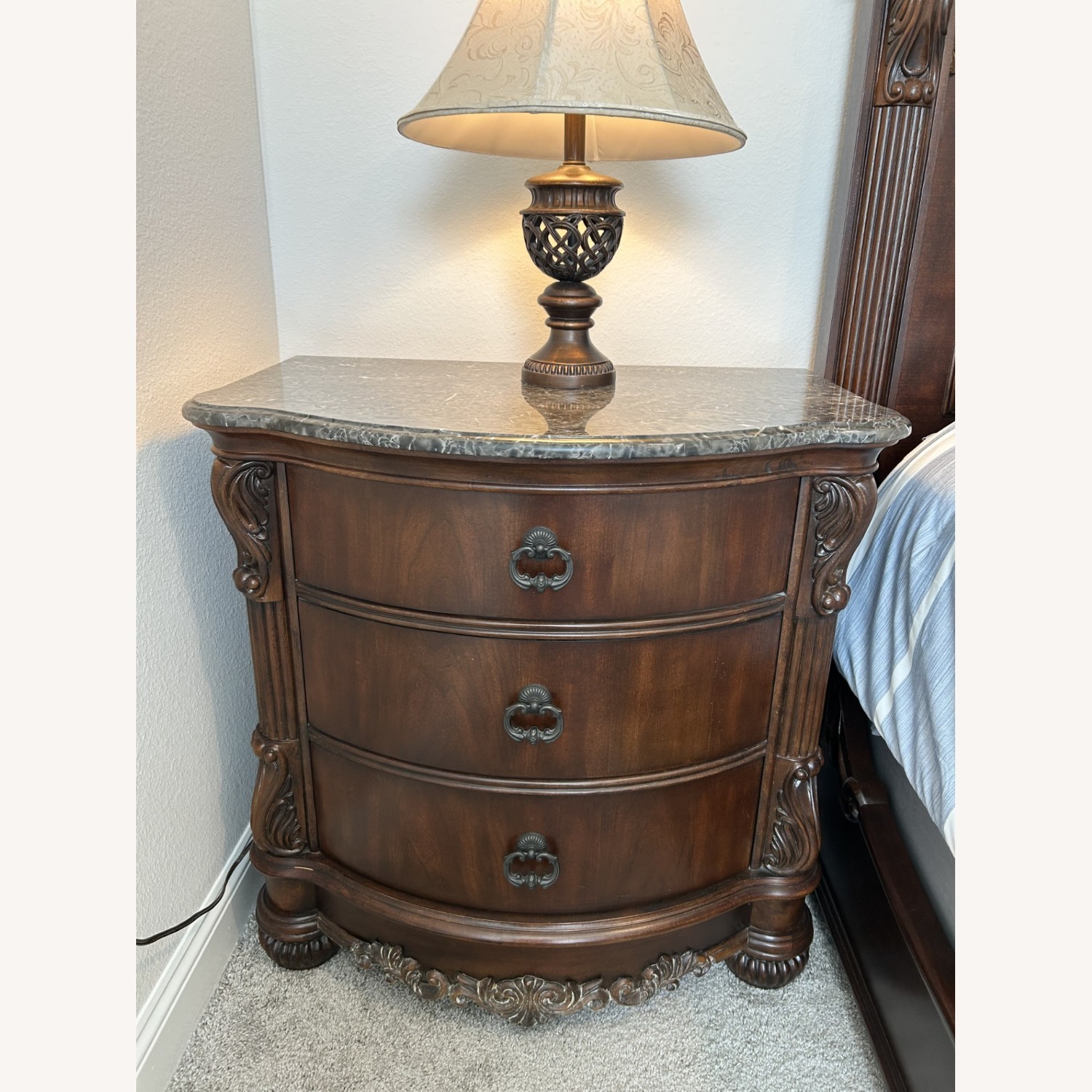 Seller's Notes:Solid wood with Marble top, in great condition. No kids, no pets, no smoking. Moving to a smaller home.