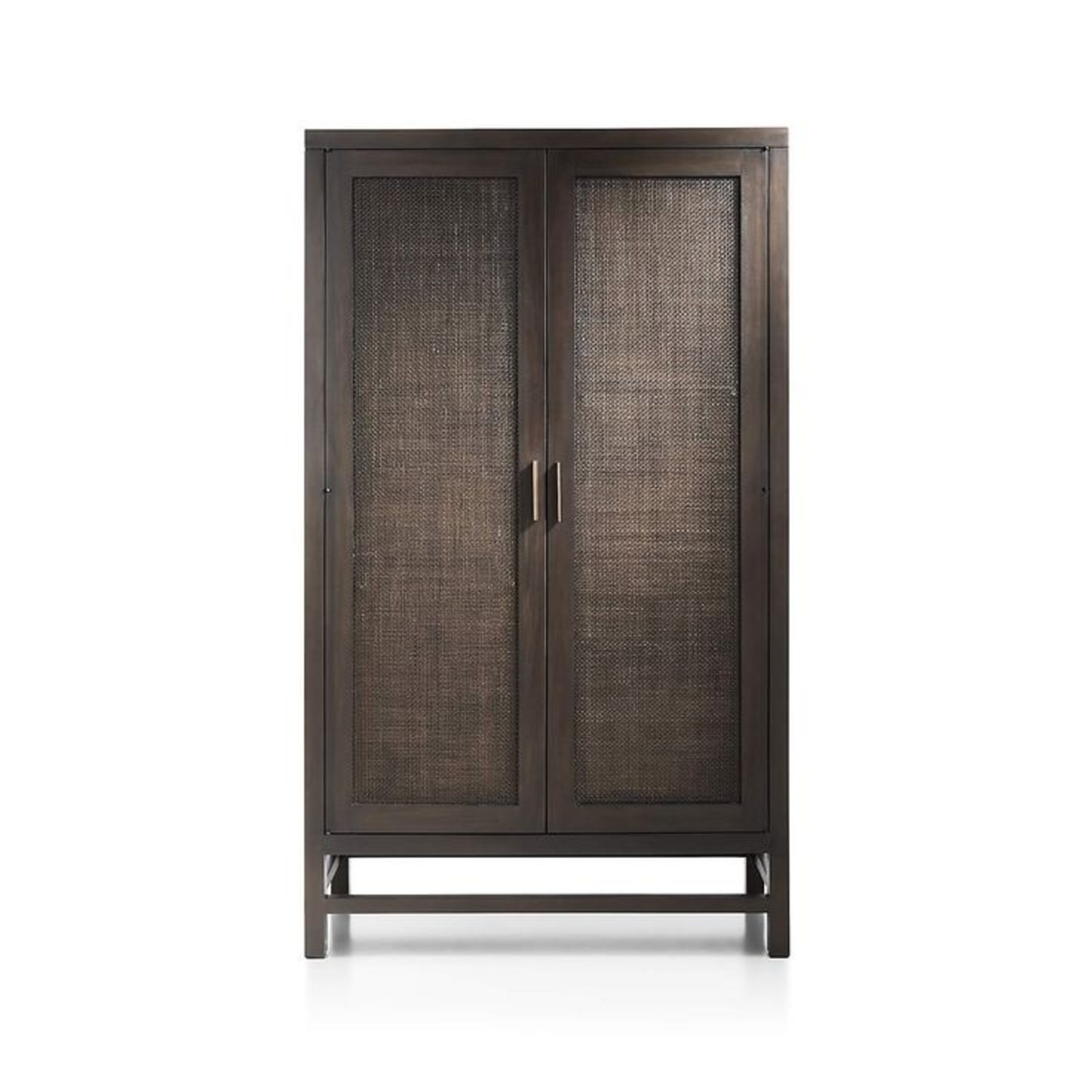 Crate & Barrel Blake 3" Dark Brown Teak & Rattan Storage Cabinet