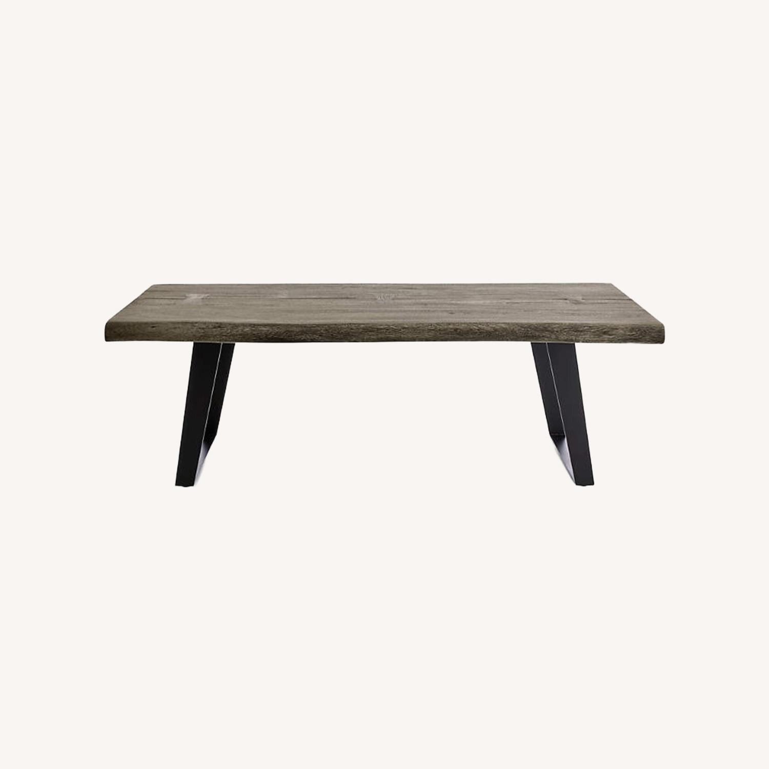 Angled, U-shaped legs, fashioned from steel and finished in matte antique black, provide a modern counterpoint to the live-edge wood planks. Table will exhibit unique grains, knots, and fissures that add to the distinct character of this exceptional statement piece. The Yukon Coffee Table is a Crate and Barrel exclusive.