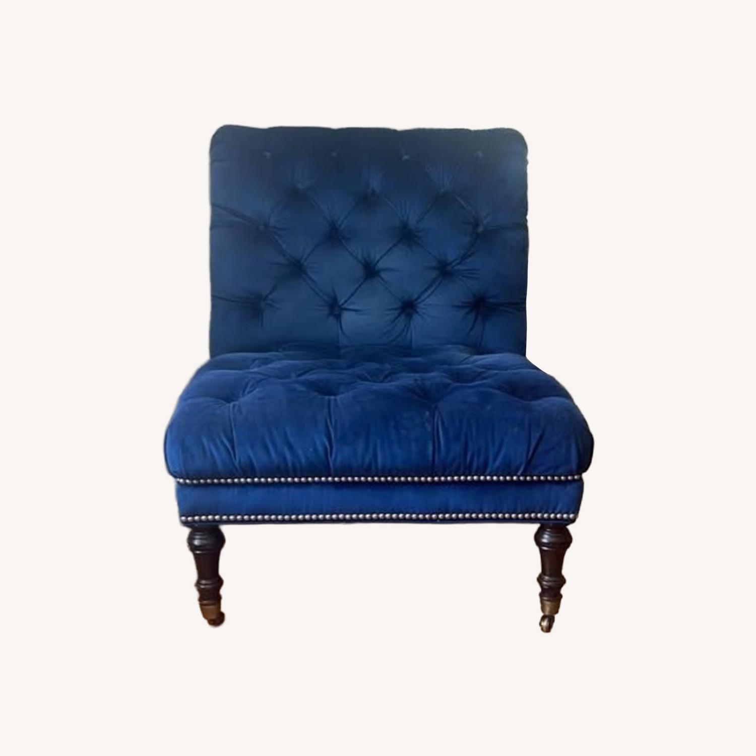 Custom Hand-tufted Blue Velvet Accent Chair