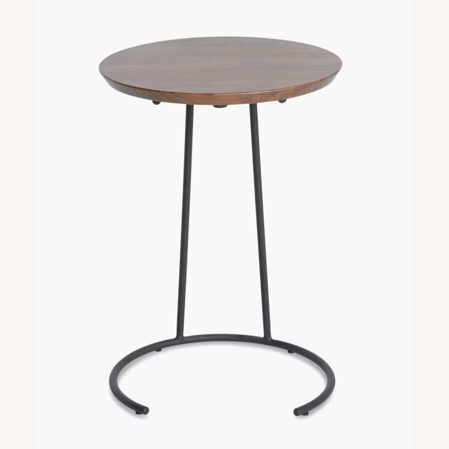 Solid walnut top; powder-coated steel base.