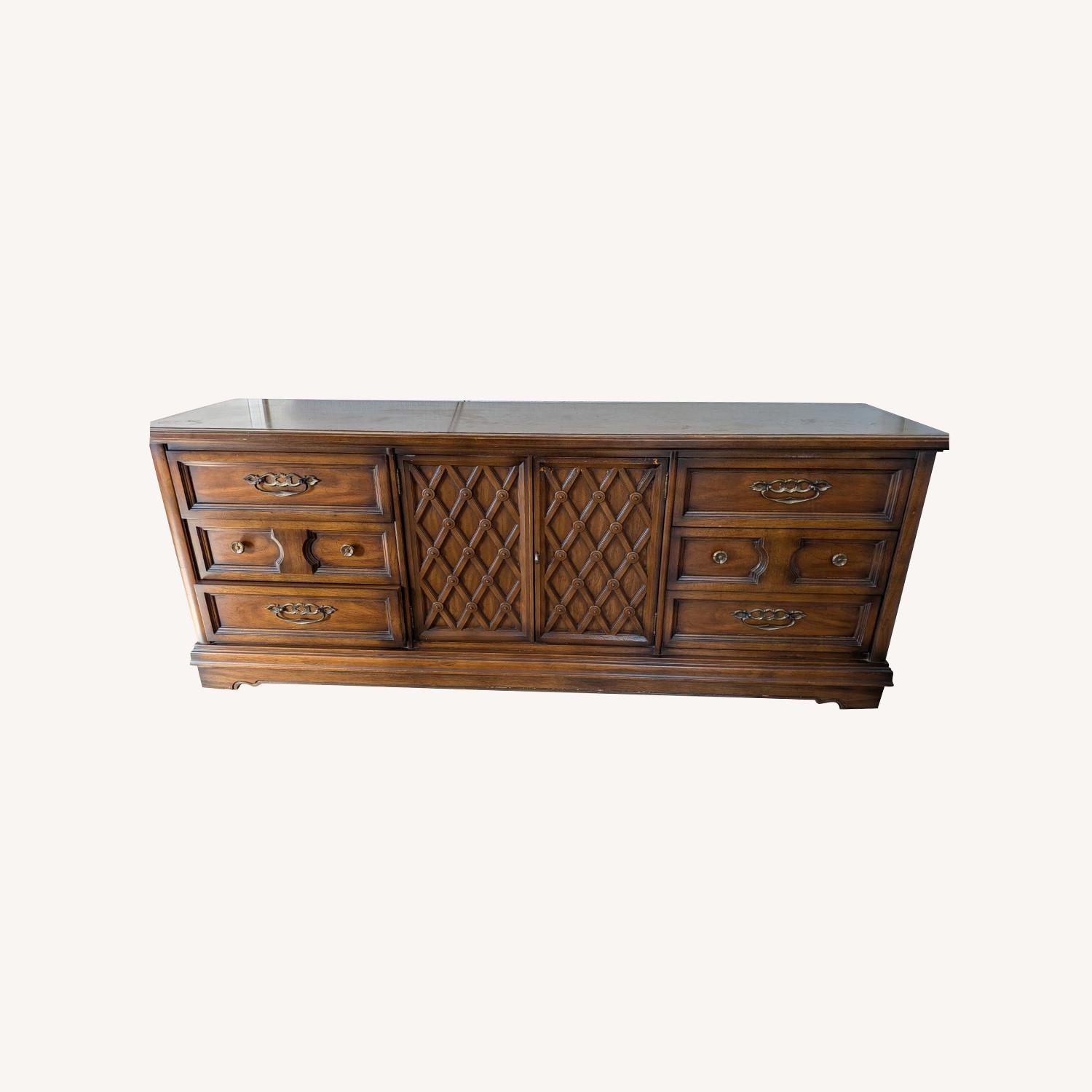 Seller's Notes:"Selling a beautiful matched set of vintage Drexel 'Almeria' bedroom furniture, dated August 1967. Includes one 9-drawer triple dresser and two rare commode-style nightstands. Pricing: Complete Set: $800 (Preferred) Dresser only: $500 Nightstands (Pair): $500