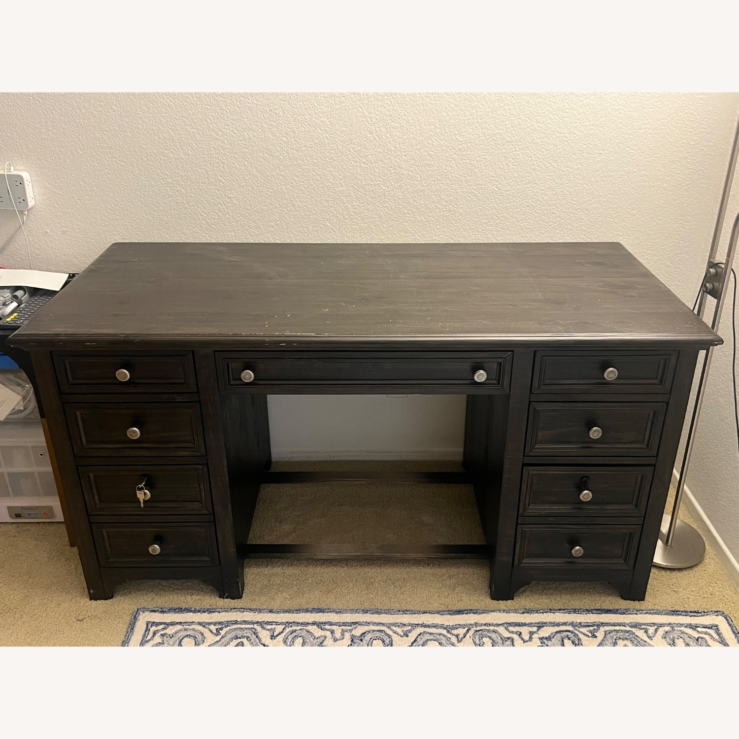 Seller's Notes:Used Valencia Executive Desk Bought 2 years ago and has seen regular use Selling because I’m moving. Asking $800 obo The desk surface has some cuts and pits but all fixable. One of the desk drawers has a key missing No pictures of inside the drawers because there is still some stuff inside but they are all clean and no sign of rough use Dimensions: 60ʺL × 28ʺW× 31ʺH Pickup will have to be from a third floor apartment.