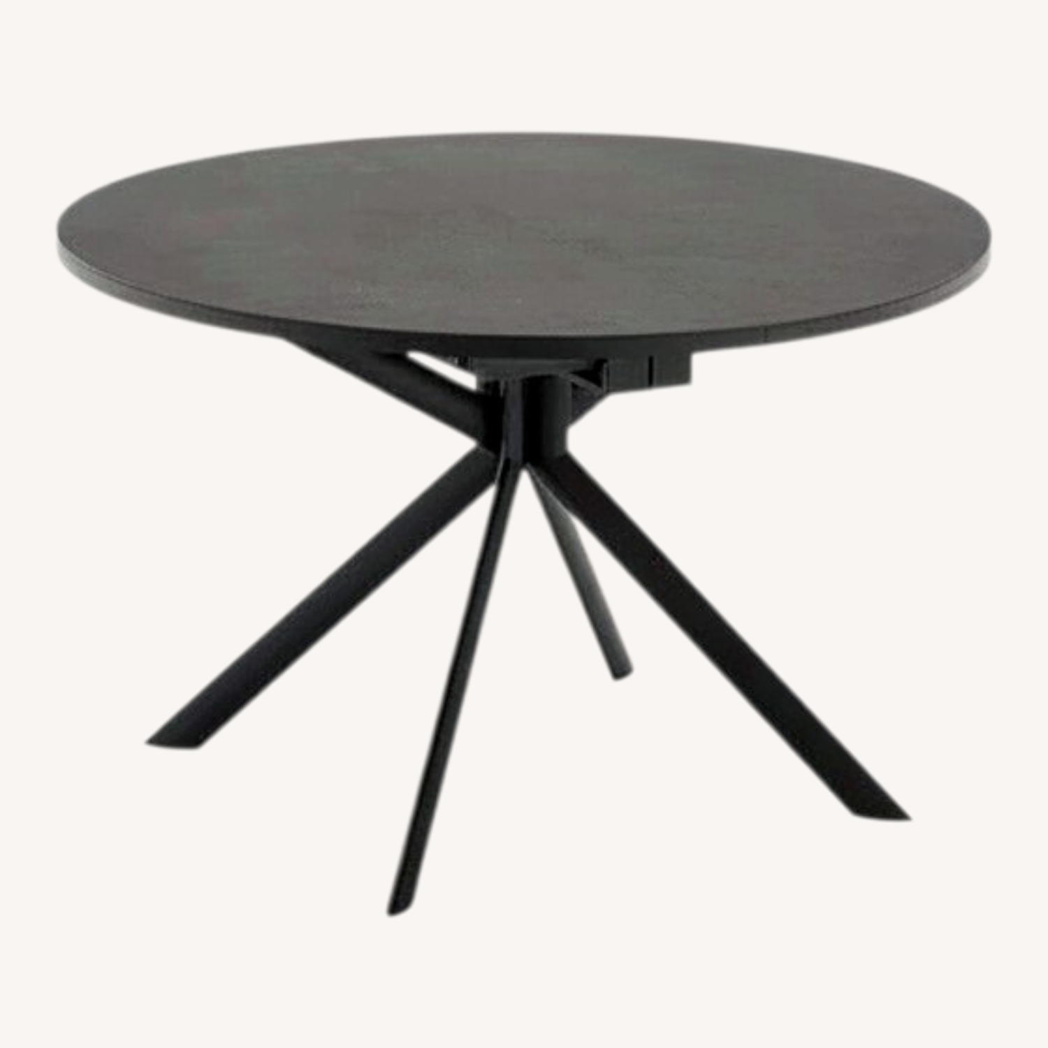 Tavolo allungabile GIOVE, basamento in metallo con piano tondo in legno, legno-ceramica o legno-vetro. Base centrale in metallo fissa con quattro gambe inclinate a sezione ellittica e meccanismo di apertura a libro con allunga centrale in tinta con la base. Le linee semplici e decise lo rendono adatto ad ogni spazio abitativo.