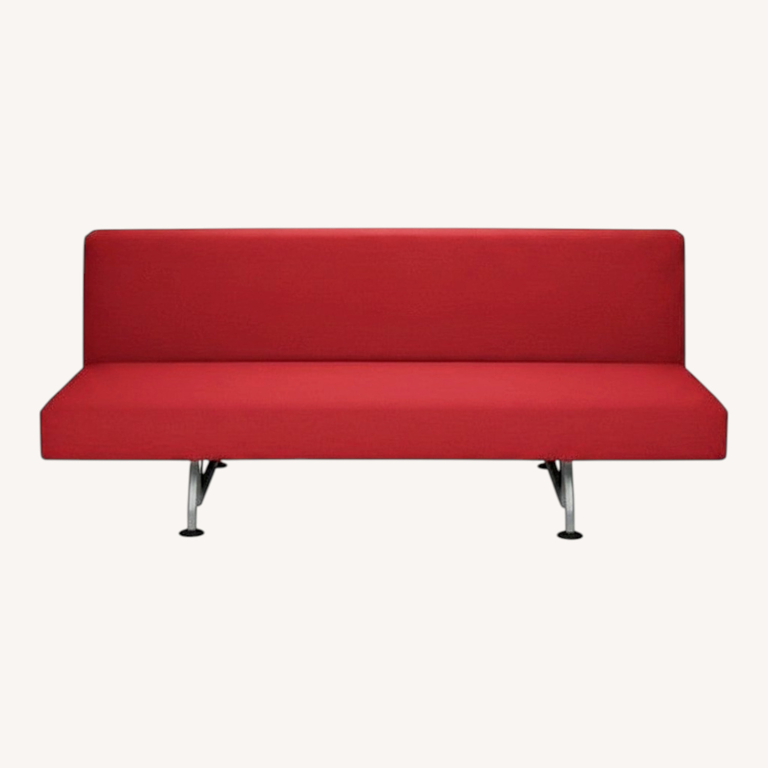 Seller's Notes:Purchased directly from DWR. Had minor use but some cat scratches evident. The red cover has sun bleaching. There is an additional cover as seen in photos. The red cover can also be replaced. Opens easily into queen size bed.