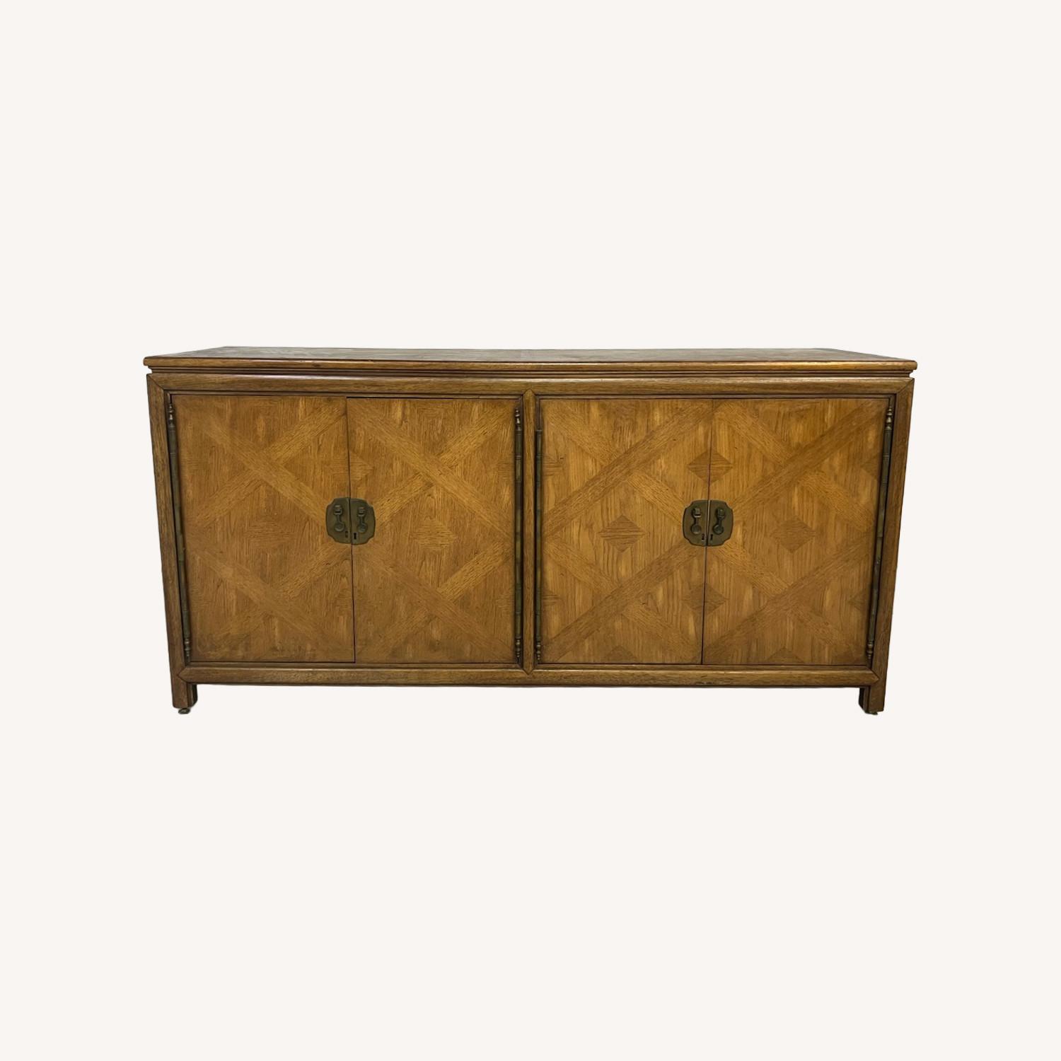 Seller's Notes:Shop with us at KyDeco.com for free or discounted delivery! This exquisite credenza showcases the refined aesthetics of Hollywood Regency design through its distinctive diamond parquet pattern rendered in rich pecan wood. A masterpiece of functional elegance, it serves as both a striking focal point and practical storage solution for your most discerning spaces. The geometric woodwork detail reflects timeless glamour, while the streamlined proportions maintain an air of understated luxury. Perfect for curating a curated, sophisticated interior.