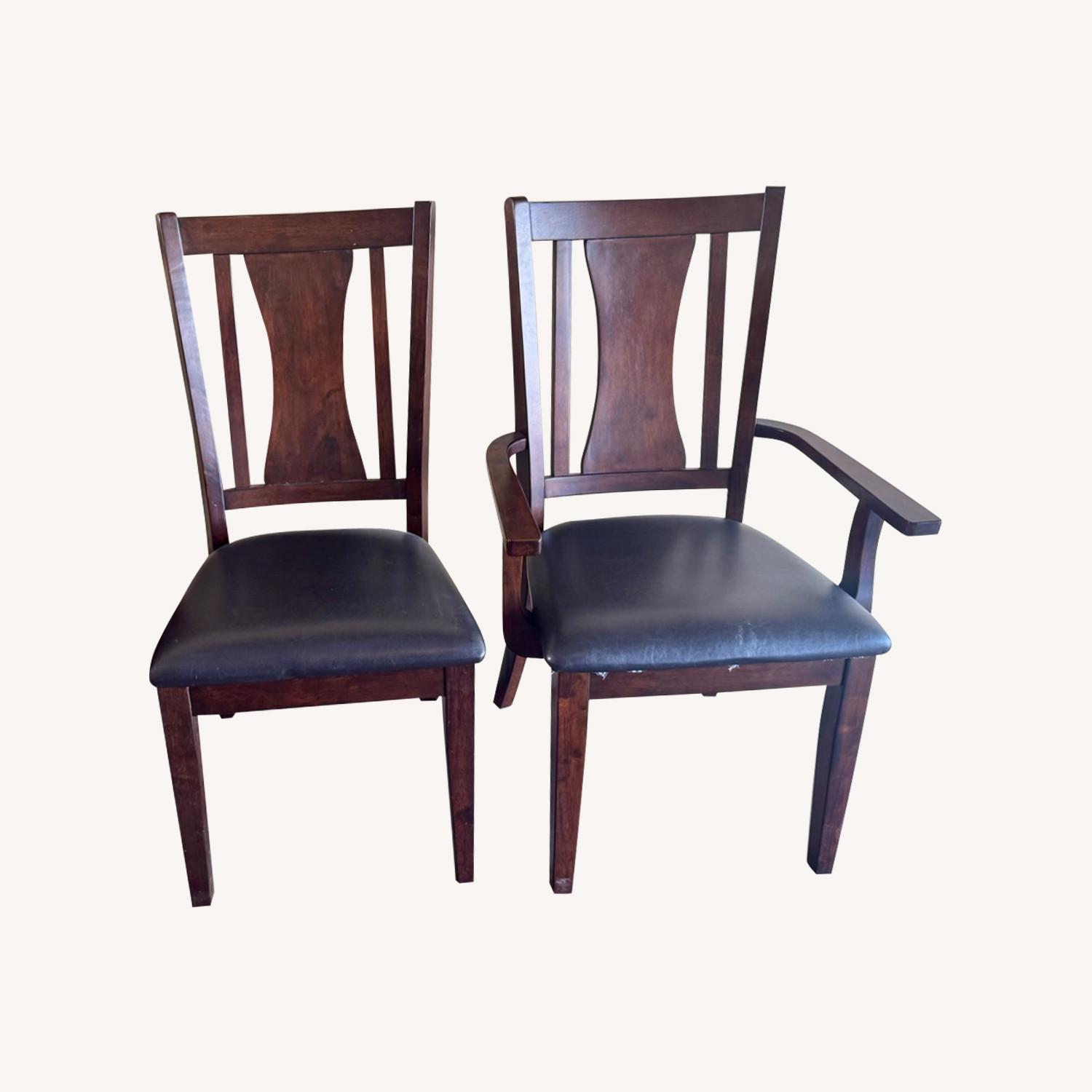 Seller's Notes:In very good condition, comes with 6 brown wood and black leather dining chairs and 1 extra dining chair with arms. $100 for the set! Only available for pick up. Mondays at any time, Tuesday-Friday pickup available after 3:40pm, weekends also any time!:)