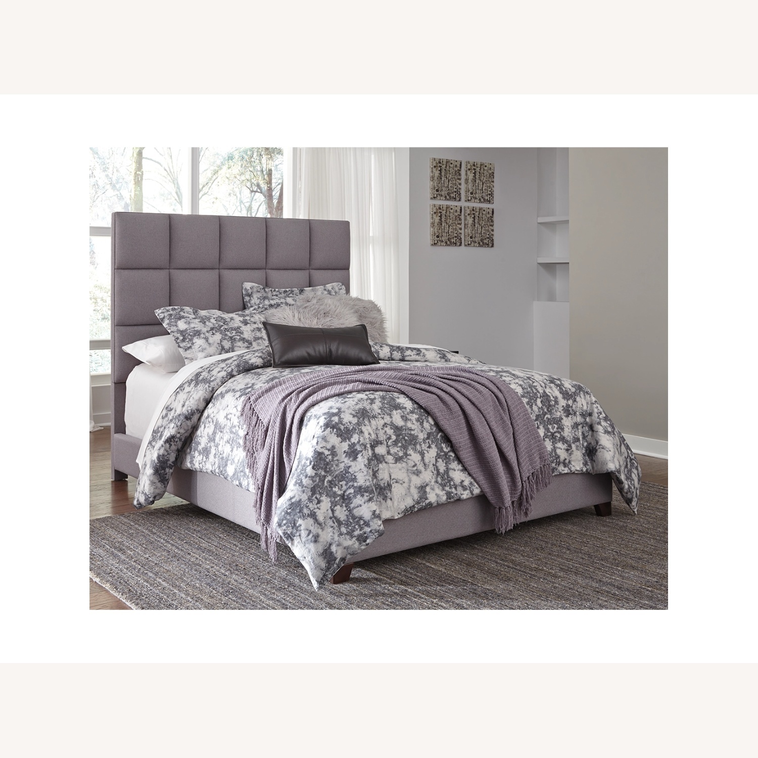 Seller's Notes:Serenity now. The Dolante queen upholstered bed with Chime 12-inch hybrid innerspring mattress is sure to awaken a love for modern platform styling with a softer side. Plush to the touch and so easy on the eyes, a dusty gray fabric hugs the bed—from the chic headboard with stitched square tufting, to the low footboard and side rails, emanating the calming mood you long for in the bedroom. With the mattress included, you'll get the support of a truly traditional coil mattress which contours to your body for a comforting feel. High density foam provides the firmness you love. Gel memory foam provides restorative support for your lower back. Hypoallergenic material is ideal for sufferers of allergies for ultimate undisturbed sleep—not to mention peace of mind. Plus, this mattress arrives in a box for quick and easy setup. Simply bring it to your room, remove the plastic wrap and unroll. You’ll be amazed at how it fully expands within minutes. Foundation/box spring available, sold separately.