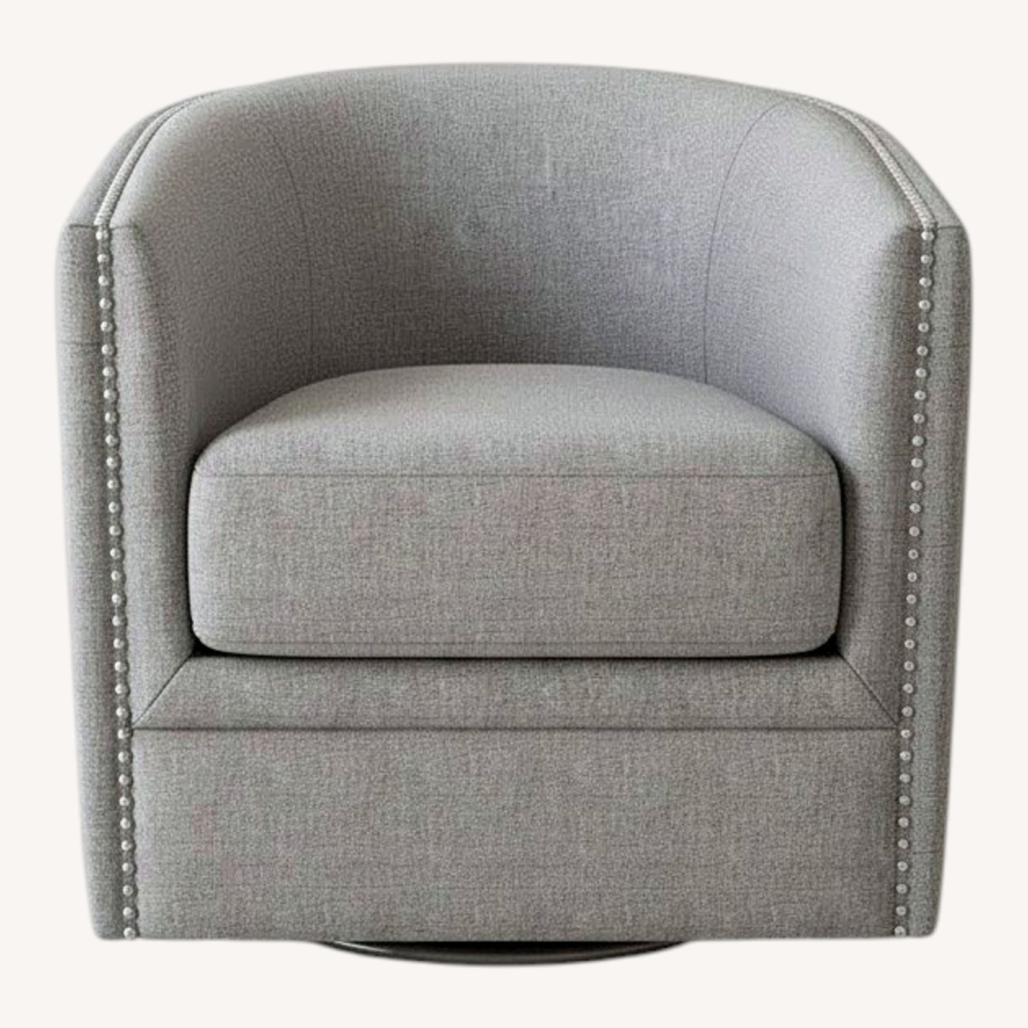 Superior Design & Craftsmanship: Each chair features a gracefully curved silhouette with a tufted backrest, adding a touch of classic charm. The sleek nailhead trim along the edges enhances its refined aesthetic, making it a standout piece in any room. Comfort: Sink into plush, high-density foam cushioning that provides exceptional support for hours of relaxation. The 360-degree swivel base allows for smooth, effortless movement, perfect for lively conversations or quiet evenings with a book. Versatile Style: Whether placed in a cozy living room, a chic office, or a stylish bedroom, this chair complements a variety of decor styles, from contemporary to transitional. Its neutral tones make it easy to pair with existing furniture.