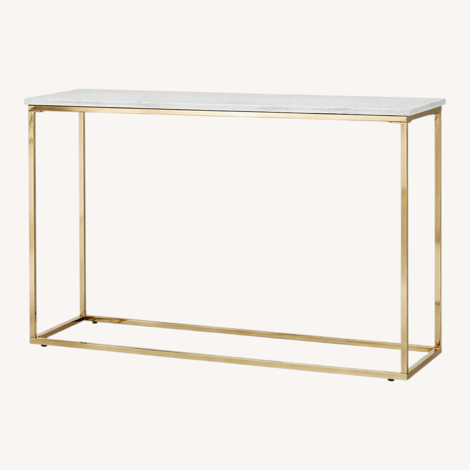 Donny Osmond Isabelle Marble Sofa Table with Brushed Brass Legs in White