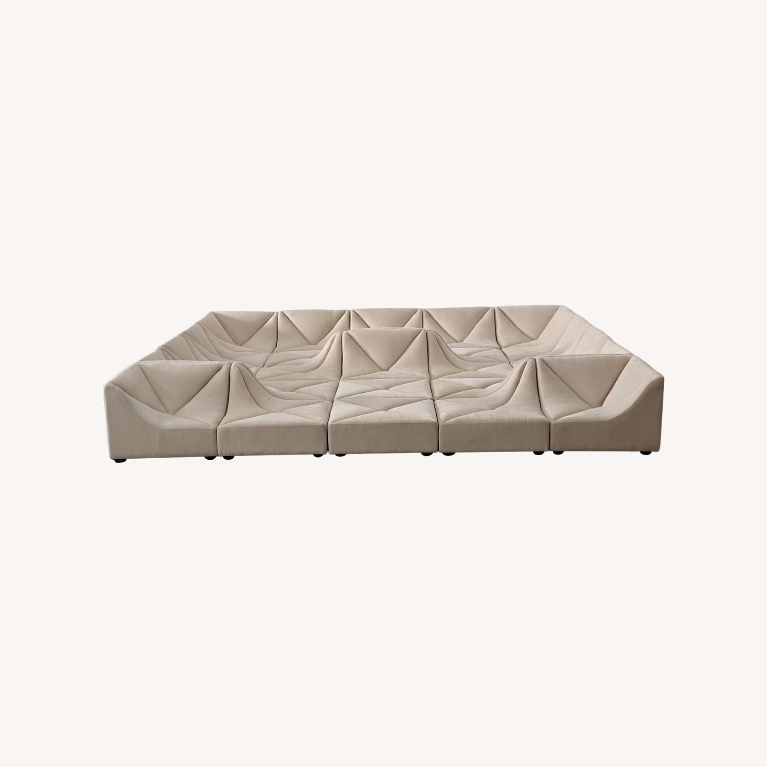 Seller's Notes:This sofa was custom ordered for a photoshoot but it arrived late so it was never used. Paid 13,000$ + shipping and tax. Chenille beige color. It is new, still boxed. If you are interested in some of the modules message me, we may figure something out.