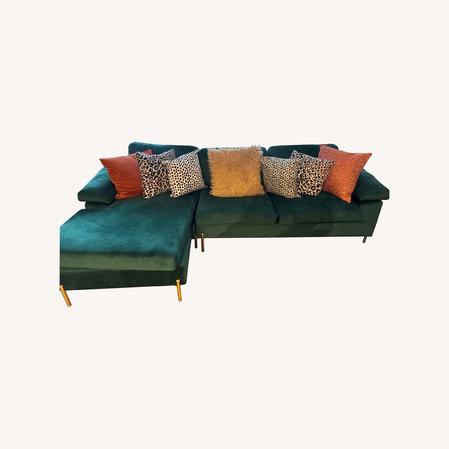 Seller's Notes:This emerald green sectional has been a really loved piece in my home. It’s comfortable, spacious, and honestly one of those couches people always comment on when they walk in. The color is rich and vibrant without being overpowering, and it adds a lot of personality to a room.