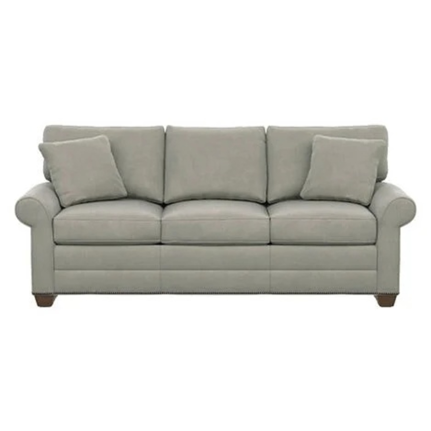 Tailored by hand over a durable engineered wood frame. Two 17" pillows included; optional nailhead available in Design Centers.
