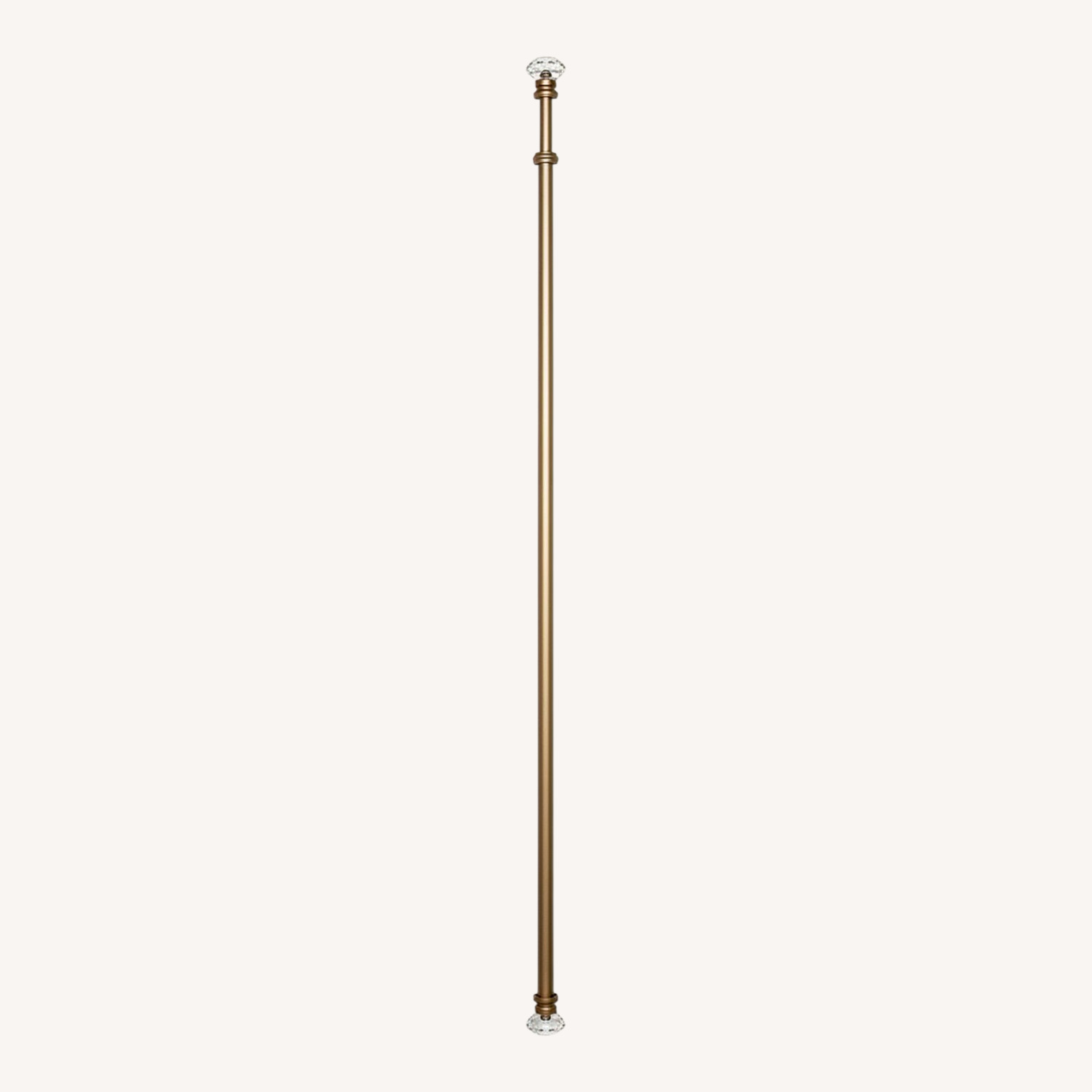 Seller's Notes:Elegant Ethan Allen decorative drapery rod featuring faceted crystal-style finials, oversized curtain rings, and a warm antique gold finish. The combination of classic metal hardware and crystal accents creates a refined look that works beautifully in traditional, transitional, or contemporary interiors. Previously installed in a Washington, DC condominium and carefully maintained. The rod remains in excellent condition with minimal signs of wear from prior installation. Includes rod, crystal finials, and coordinating curtain rings as shown. This rod pairs well with linen, silk, or pinch-pleat drapery panels and works especially well for taller windows or formal spaces. A second Ethan Allen curtain rod with classic finials and coordinating linen and silk drapery panels are available in separate listings.