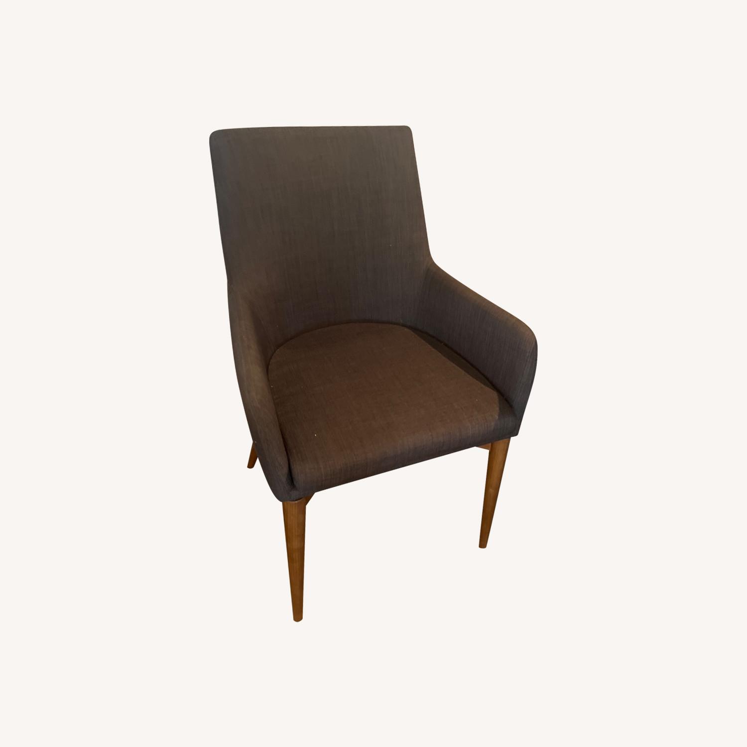 Seller's Notes:4 Chairs in set for one price! Mint condition! rarely used! beautiful quality made chairs with walnut legs purchased in Soho, New York 2 chairs are with arms - 2 chairs have no arms.