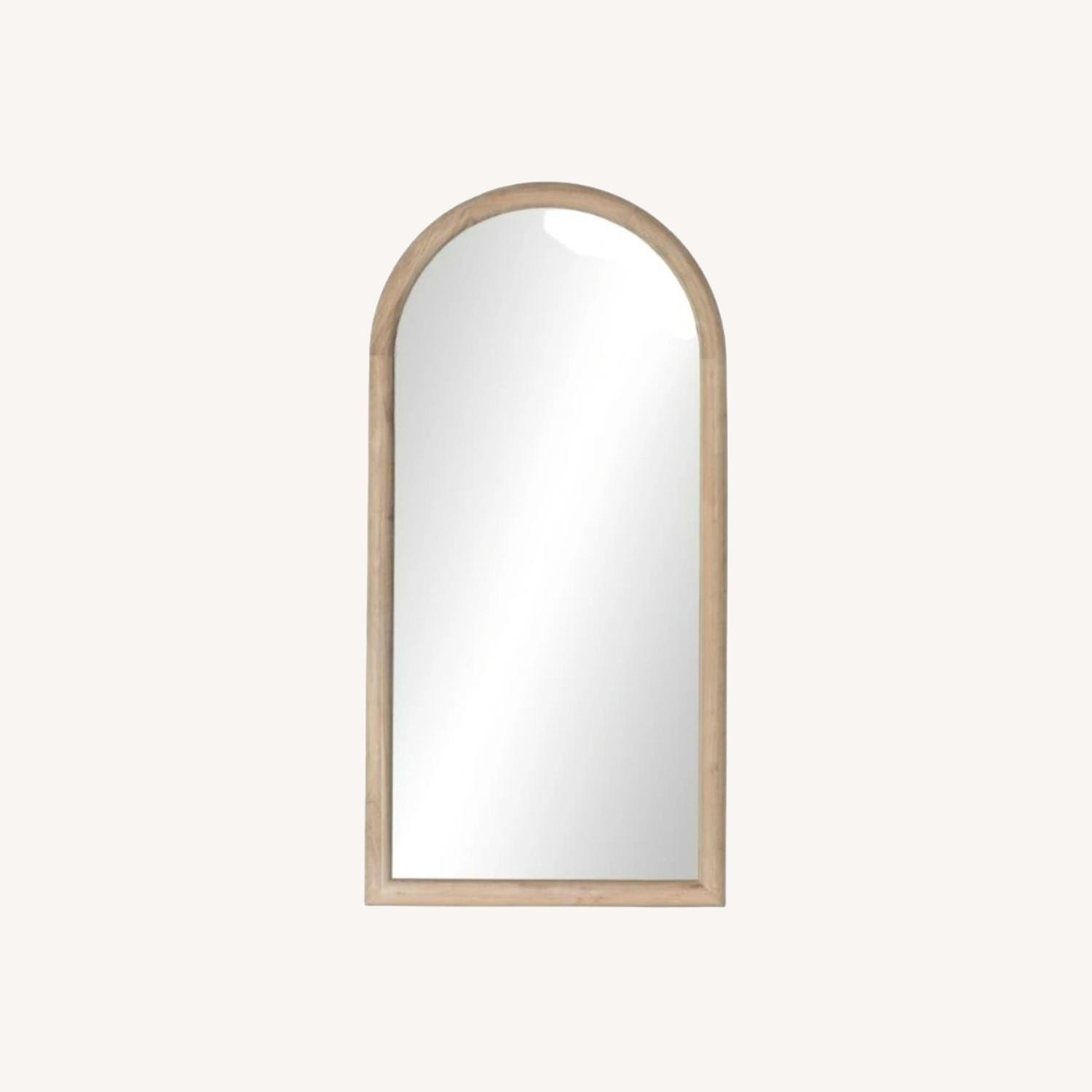 Seller's Notes:Solid acacia is shaped and smoothed with a whitewash finish to bring a vintage art deco-inspired frame to this mirror.
