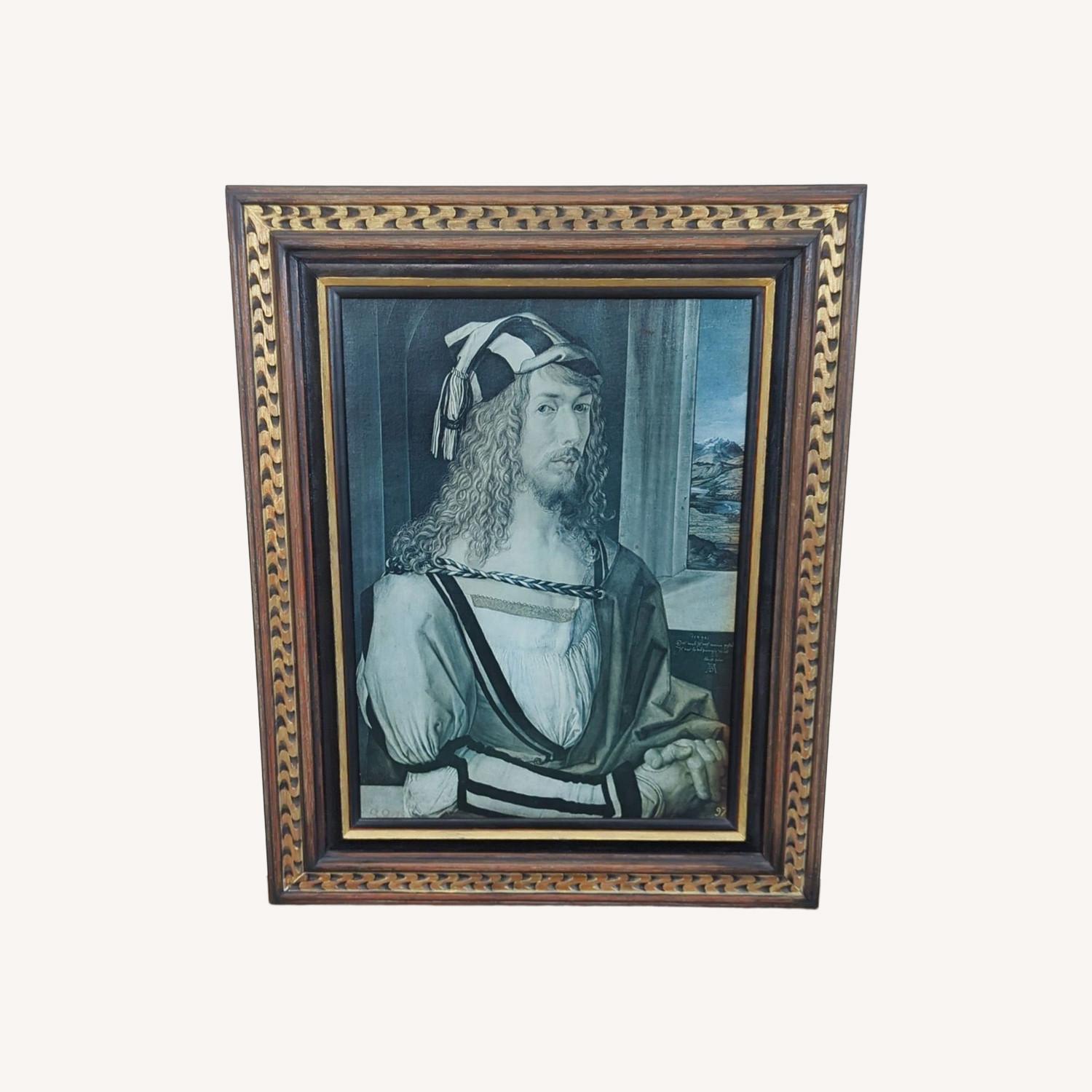 Seller's Notes:Framed print on canvas of the famous Self-Portrait (1498) by the German artist Albrecht Dürer. He portrayed himself as a refined and fashionable gentleman, wearing elegant attire and gloves to symbolize his elevated social status as an intellectual artist, rather than a mere craftsman.