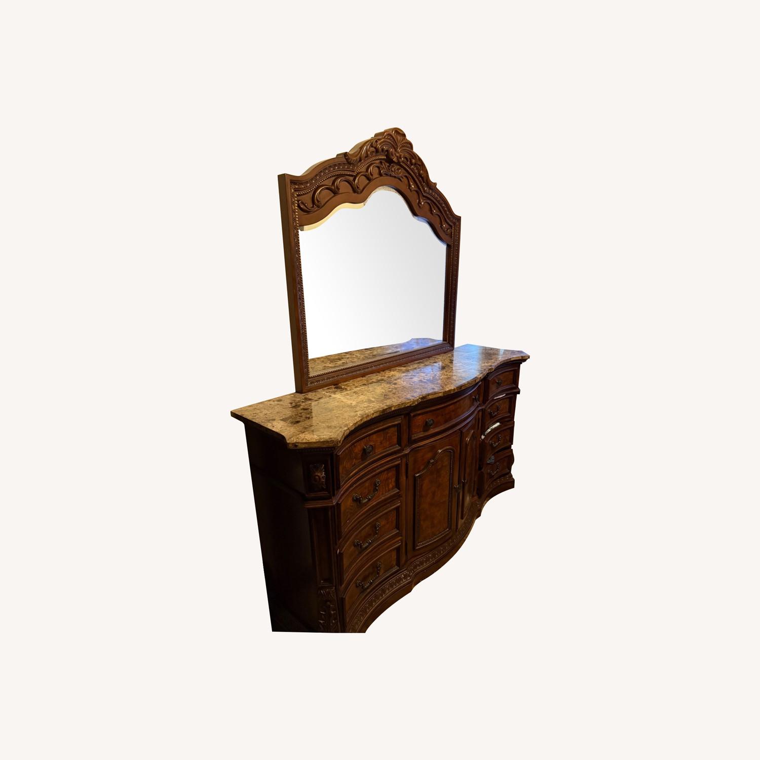 Monticello is an elegant European Traditional influenced collection. This collection stimulates the traditional and romantic essence of the countryside with deep detail and astonishing style. The collection hints at antiquity, but keeps the style fresh and new with pecan and ash veneer and its warm mellow pecan finish. Monticello features serpentine shaped cases, antique brass hardware, and curved fitting drawers. Monticello will add that elegance to dcor of many country and formal homes.