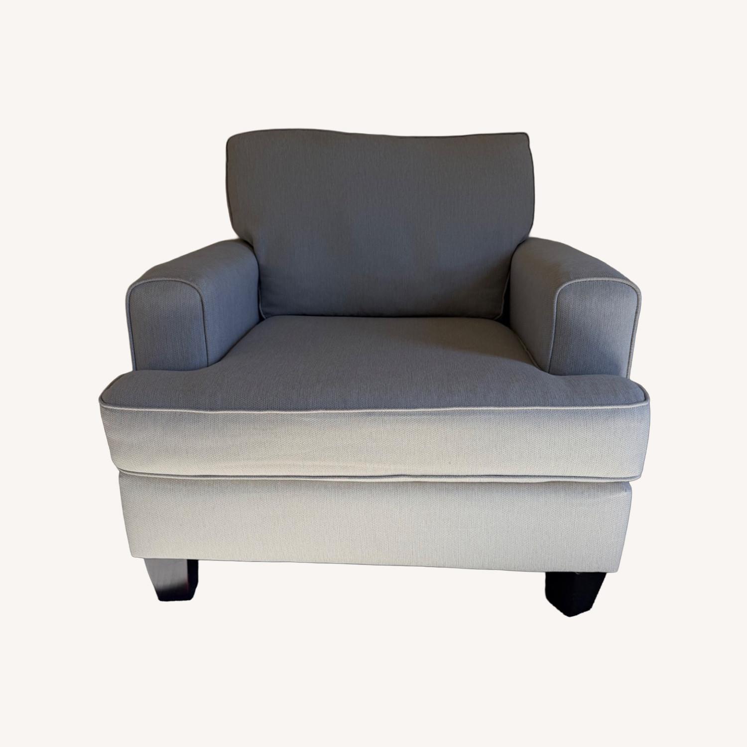 Seller's Notes:Barely used gray armchair. There is a small blue paint stain on the left side of the chair