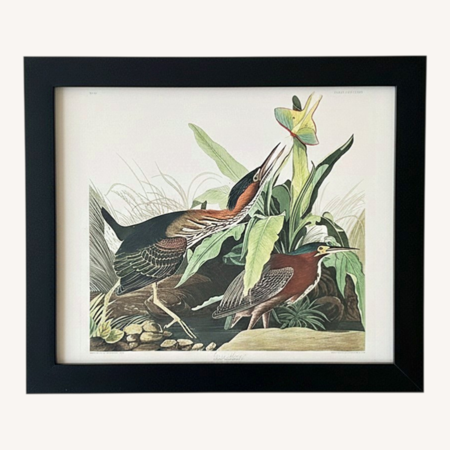 Seller's Notes:This is a Green Heron giclée wall art print that was purchased from Art.com as a gift. It was never hung and has been kept in mint condition. It includes the unused and unopened hanging wire that is attached to the back (see picture)s. The print features a beautiful Green Heron and is framed in a sleek black acrylic frame with no matting and plexiglass giving it a clean, modern look that lets the artwork stand out. The colors are vibrant and the giclée printing gives the piece a high-quality, gallery-style finish. The outer dimensions of the frame measure 19" x 23", and the inner viewing area measures approximately 15.5" x 19.5". It’s a lovely piece for anyone who appreciates nature-inspired artwork, birds, or simple modern décor, and would work nicely in a living room, office, hallway, or bedroom.