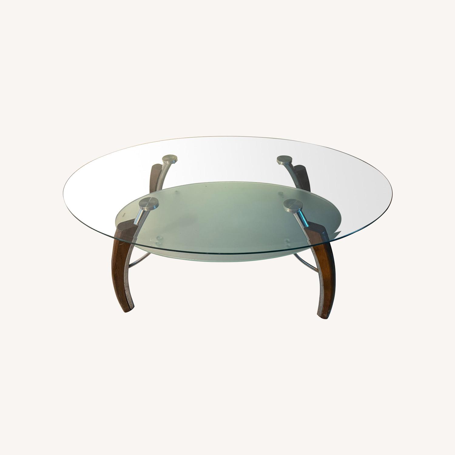 Glass Coffee Table with Wooden & Steel Legs
