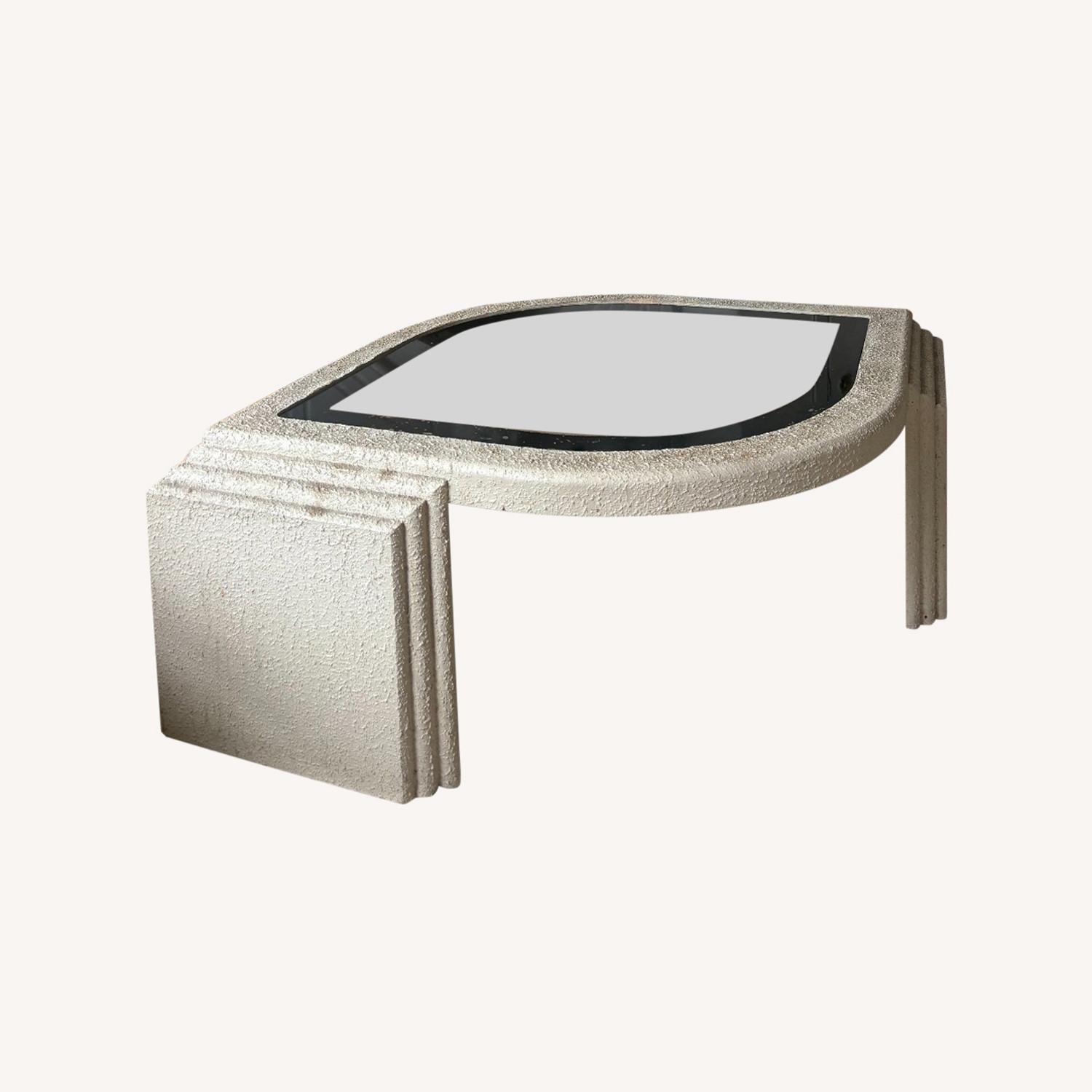 Seller's Notes:Brutalist-meets-surreal style concrete and glass coffee table. The glass top lifts off easily for cleaning and transport, while the base is sturdy, sculptural, and heavy. It had significant wear and tear when purchased it, but it makes for a very cool, artful centerpiece in a living room.