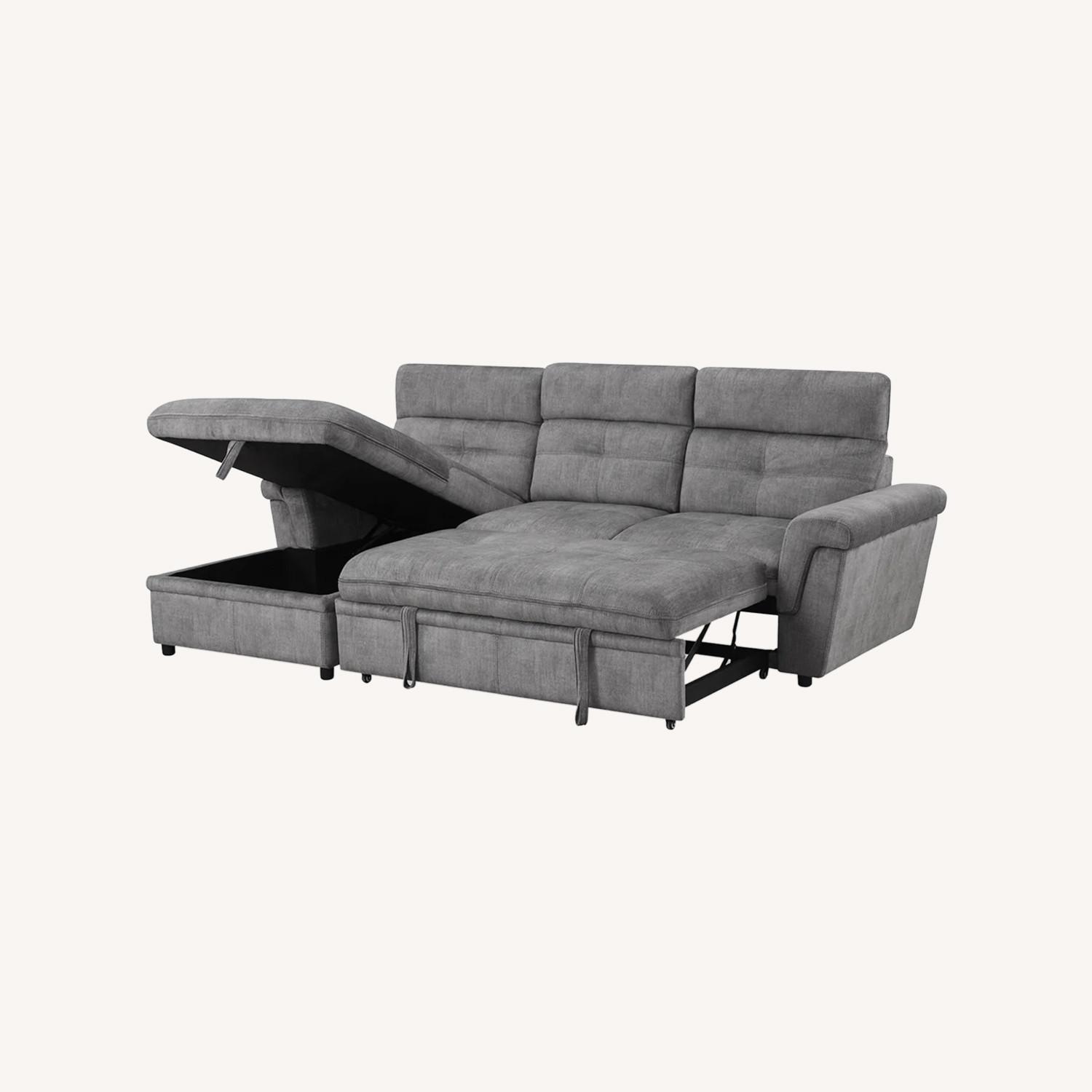 Grey Sectional Sofa with Storage & Pull-Out Bed - image-2