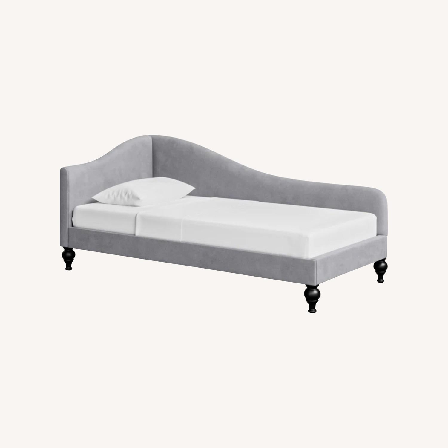 This daybed features a chaise-inspired look that gives you an additional spot to relax and snooze in any room. It has an engineered wood frame that rests on turned legs for a hint of French-country charm. A single arm and a high-low back create a dynamic silhouette that we're all about. This bed is upholstered in velvet and comes in a muted tone to fit your overall aesthetic. A series of slats eliminates the need for a box spring, so all that's left to get is a twin mattress (sold separately).