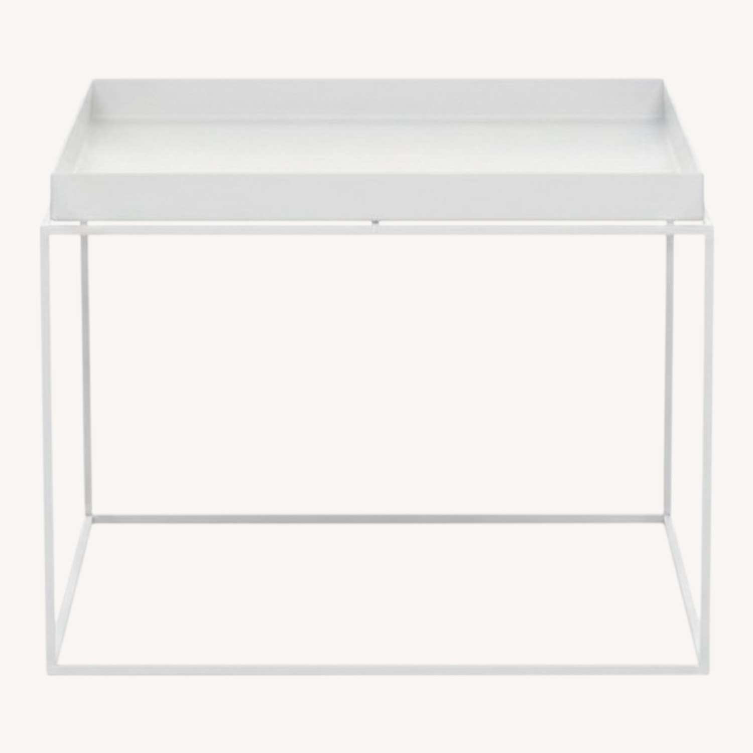 Seller's Notes:Drawing from the best of architecture and fashion, designers for Danish design collective HAY favor innovation, technology and color. The metal Tray Coffee Table (2010) is a multifunctional piece of furniture with a tray top that lifts easily off its base, featuring high edges for keeping objects securely in place. The slim and simple base complements a variety of interiors. Tray is not food safe. Made in China. Minimal design with removable top for serving. High tray edges keep objects secure. Slim and simple base complements a variety of interiors.