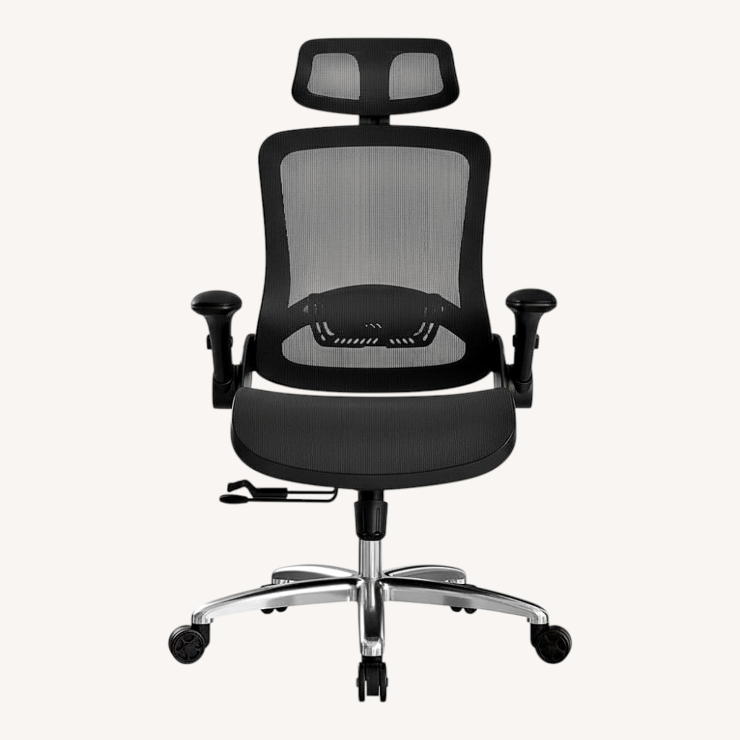 Features: Breathable mesh back, adjustable height, and flip-up arms.