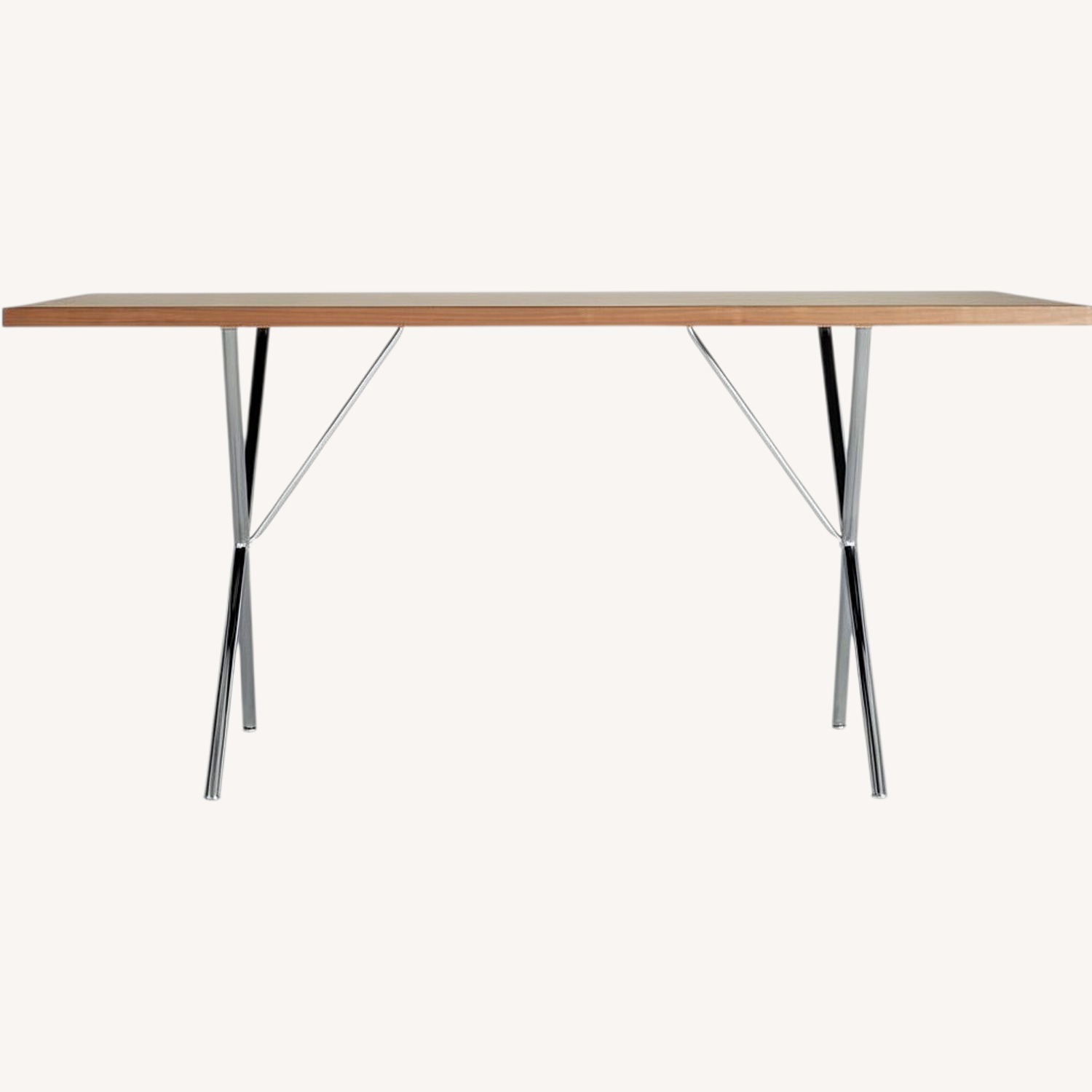The desk is in excellent overall condition and has been well maintained. The wood surface has a warm, natural finish that pairs beautifully with the sculptural chrome X-leg base, creating a light and modern profile. It’s a versatile size—ideal as a workspace, writing desk, or minimalist home office setup.