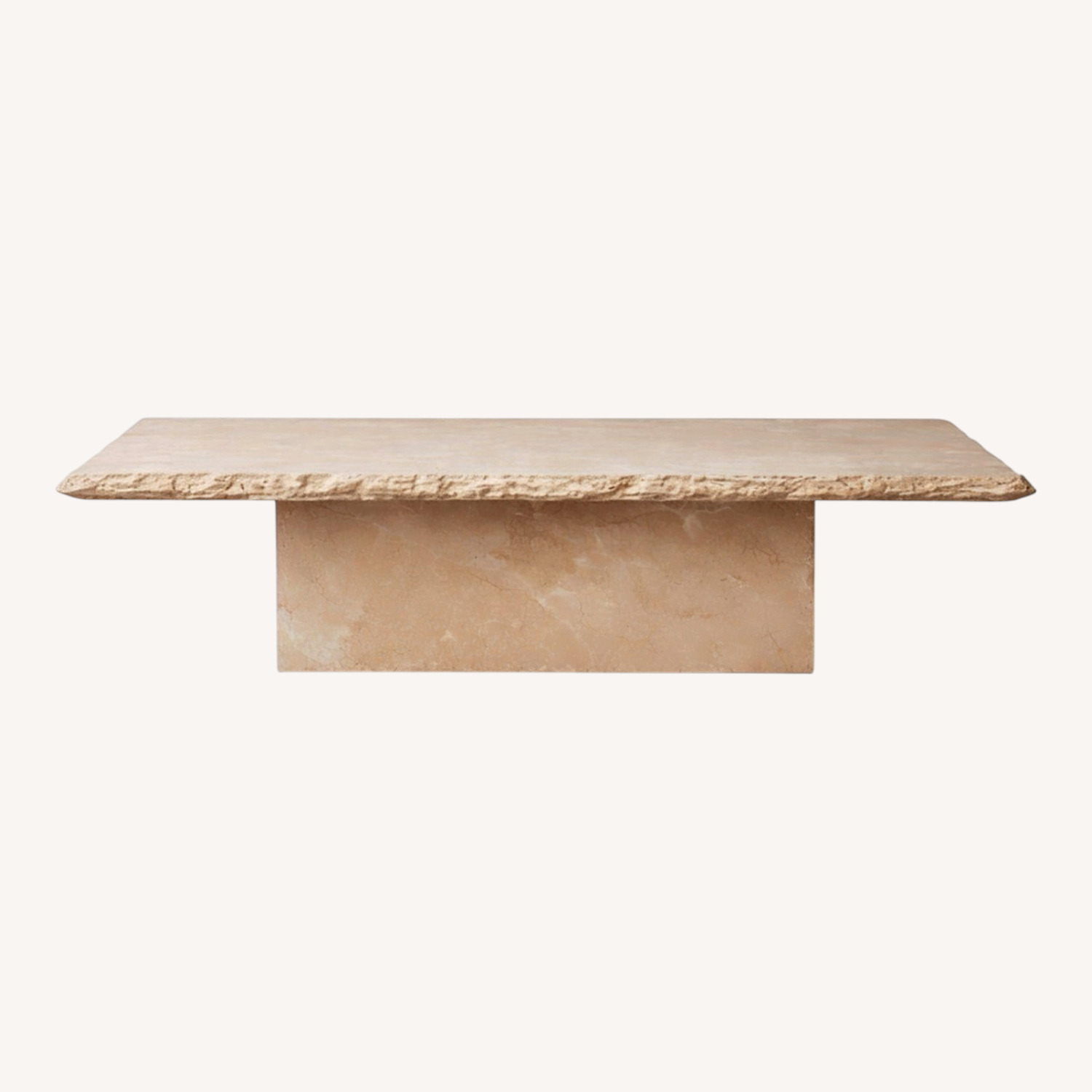 Seller's Notes:Recently purchased House of Léon Sofita Marble Coffee Table in pristine, like-new condition. This sculptural coffee table is crafted from solid Sofita marble with a hand-chiseled living edge, creating a timeless piece that blends organic texture with modern minimalism.