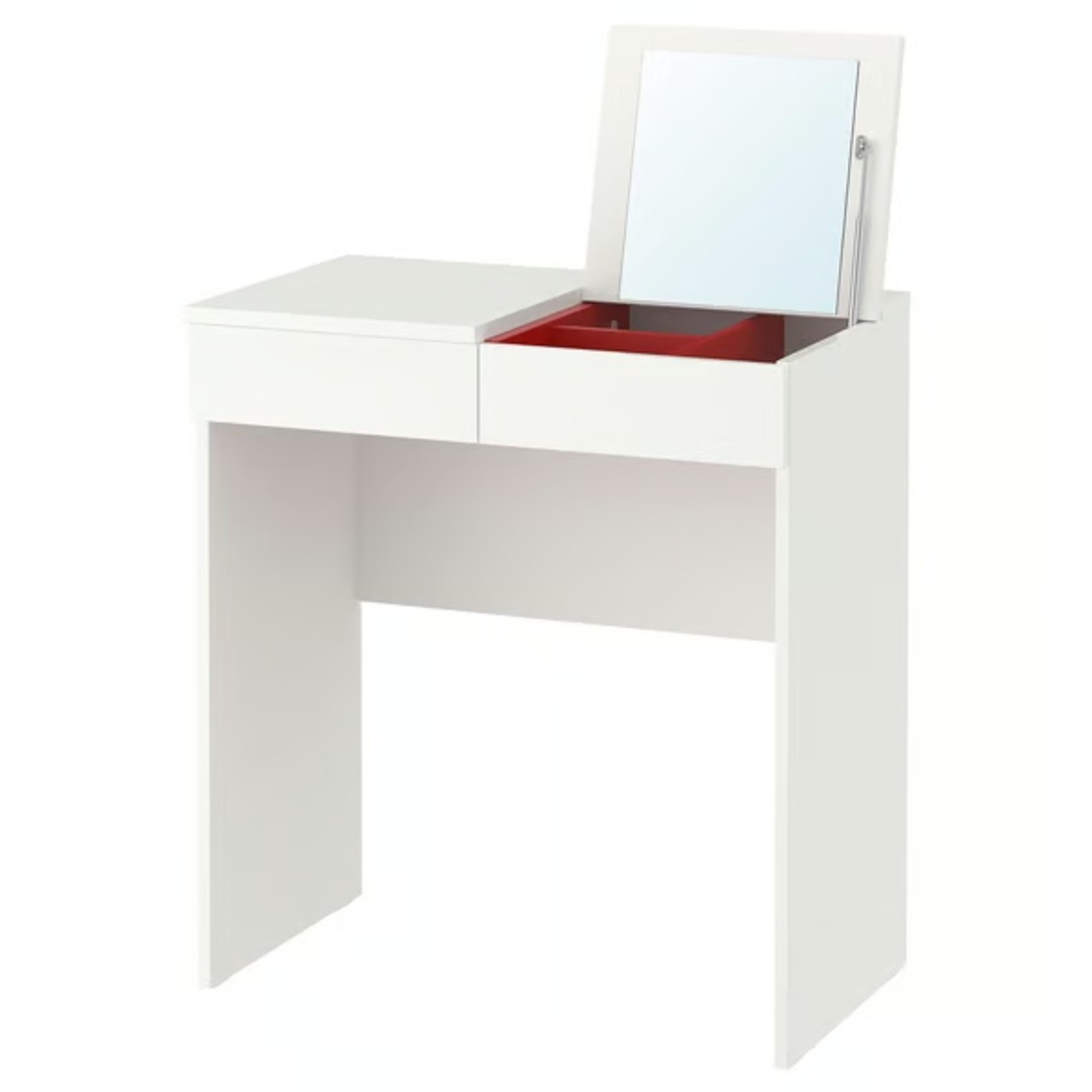 Next to the drawer there’s a hinged lid that hides both mirror and practical compartments. Whether you use it as a dressing table, desk or sideboard, you can combine it with other furniture in the series.