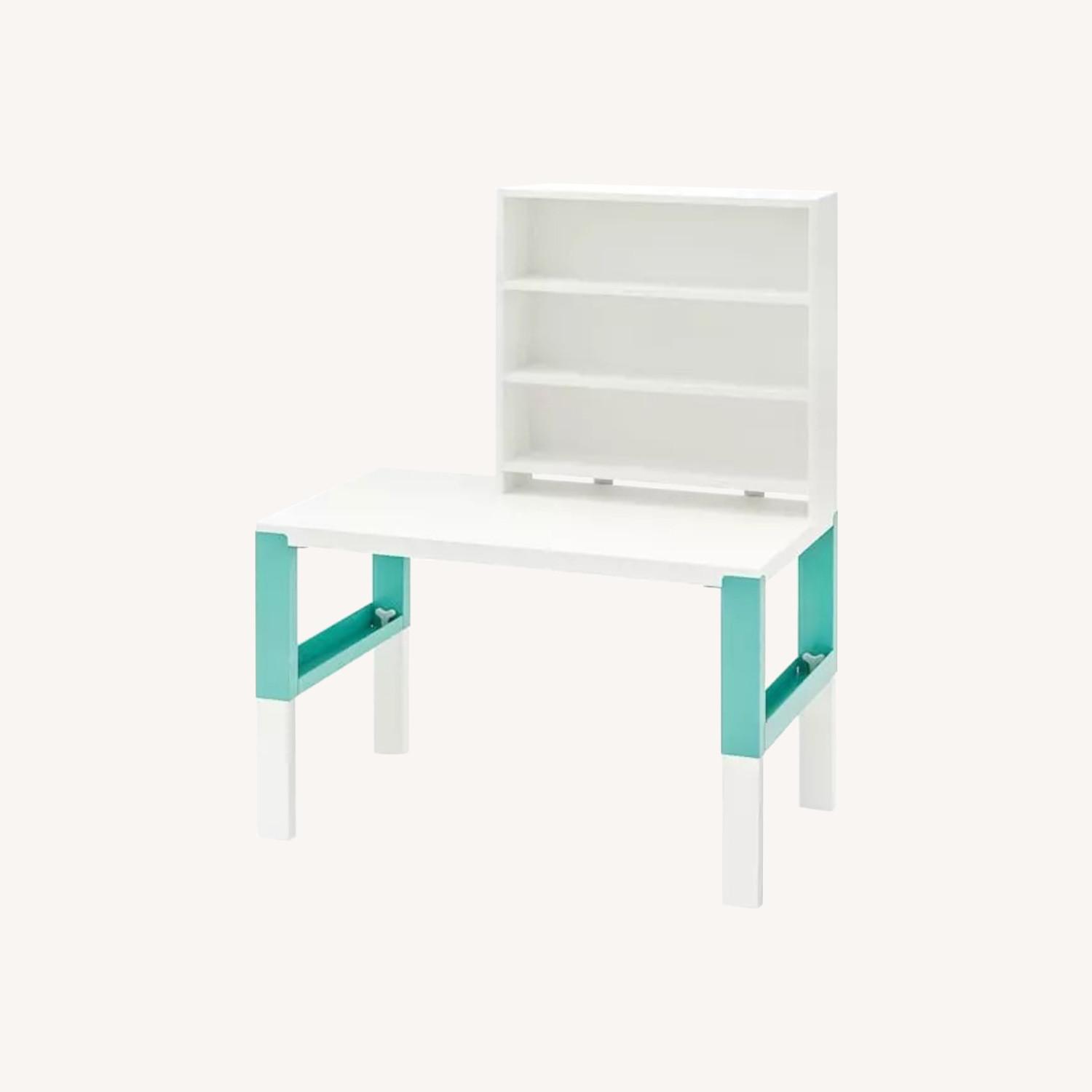 Seller's Notes:PÅHL ONE Desk with add-on unit, white/turquoise & ONE PAHL Desk w/o add on unit in white - total of 3 items retail over $260 5 months old like new