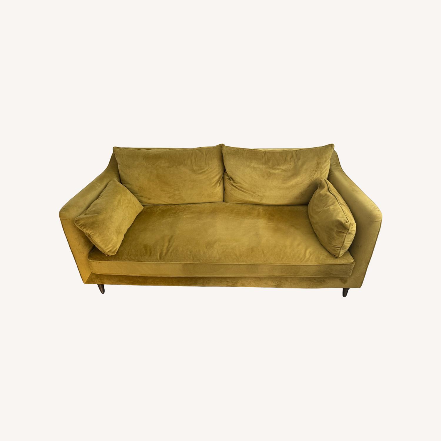 Caitlin is Interior Define's take on the classic club sofa, with super soft seat and back cushions that you can melt into," says Alaina. Its soft-yet-supportive layered cushion has been upgraded for an extra-soft sit and fully reversible cushion. The citrine velvet upholstery gives it a vintage vibe and the brass tapered round metal legs give it a touch of understated glam.